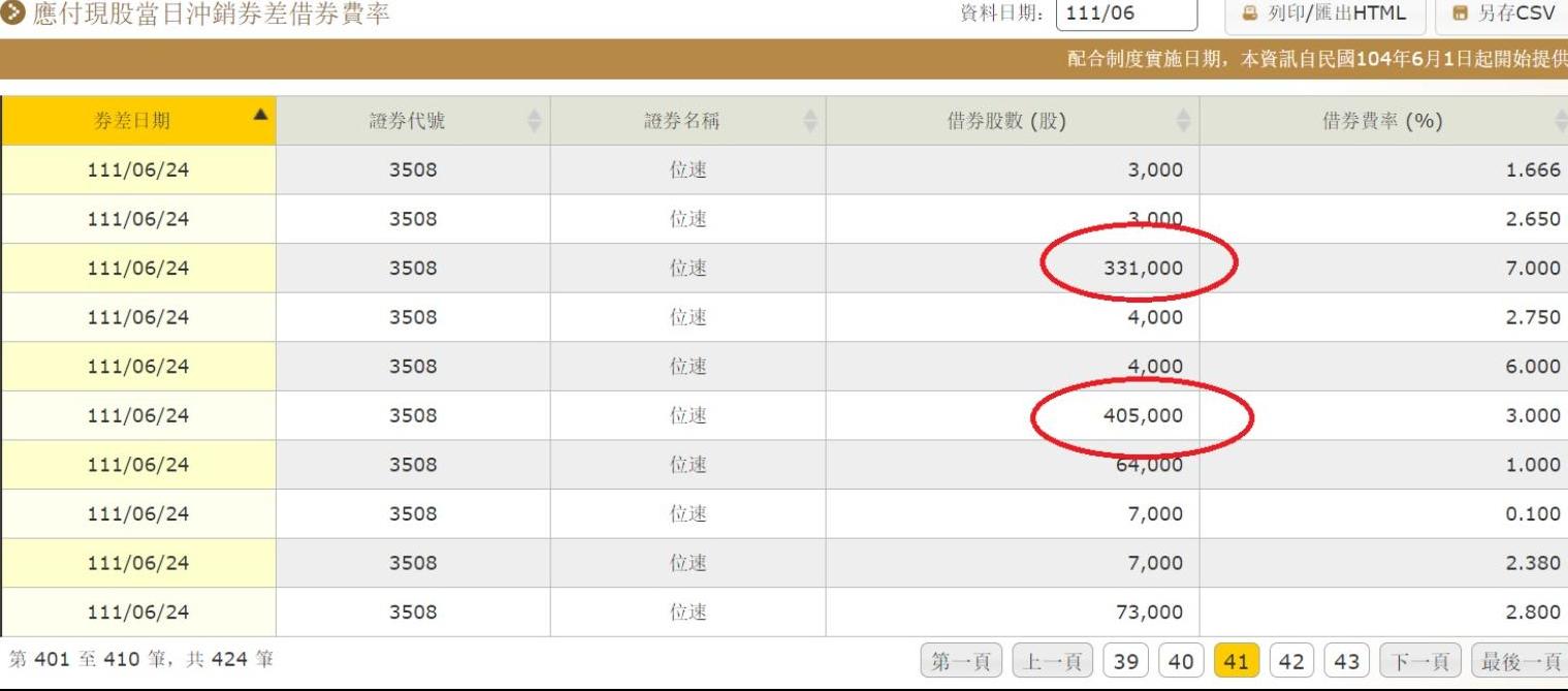 當天遭到嘎空的當沖客共2307張,這意味,24日沒有回補的放空客,必須付標借費用,先借券,券商在隔天交易日以市價強制回補,因此今日(27)的位速開盤就漲停鎖死,一開盤掛市價單買進就8千8百多張排隊,漲停價買進就1千6百多張。