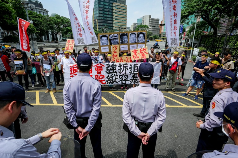 大觀事件自救會於今(17)日上午赴行政院陳情,希望行政院、退輔會等機關出面解決板橋大觀社區所面臨的迫遷問題,並要求檢討4月10日退輔會與板橋榮家對大觀社區進行第一波拆除作業的疏失,及透過警力對付群眾,使居民及聲援民眾受到暴力傷害。