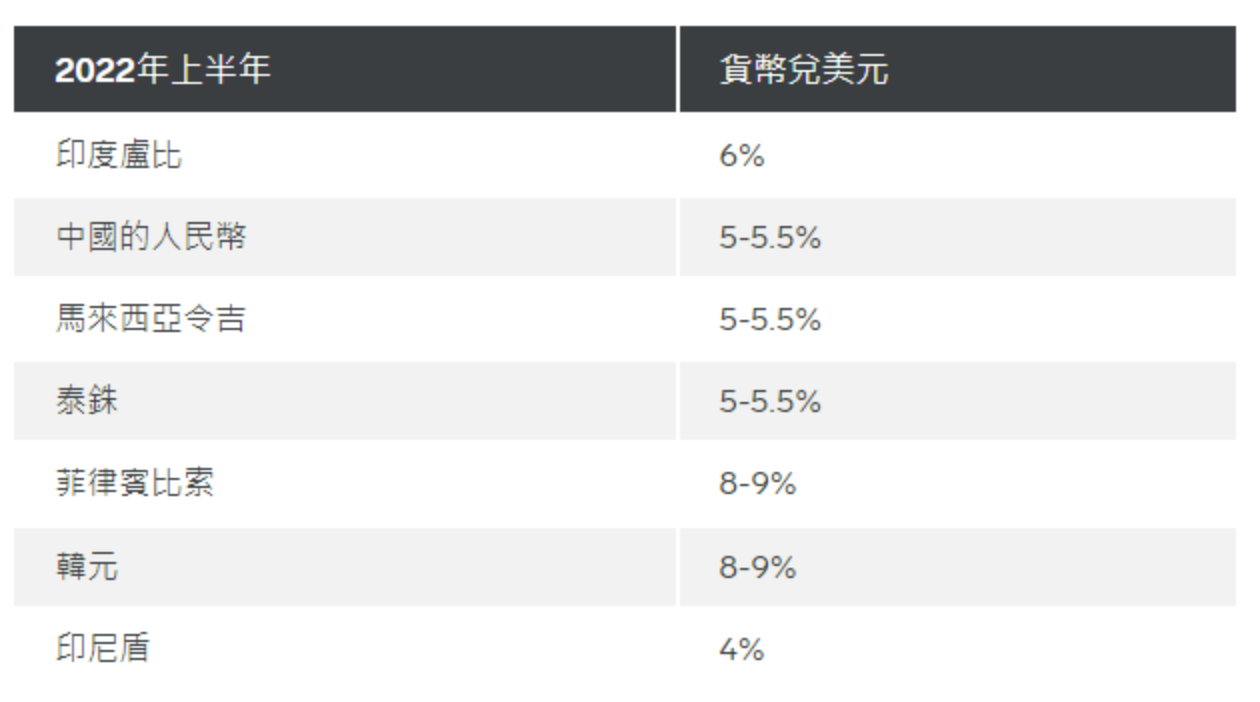 今年以來,台幣、韓元和菲律賓比索兌強勢美元全面下跌逾 6.8%,印度盧比接近歷史低點。