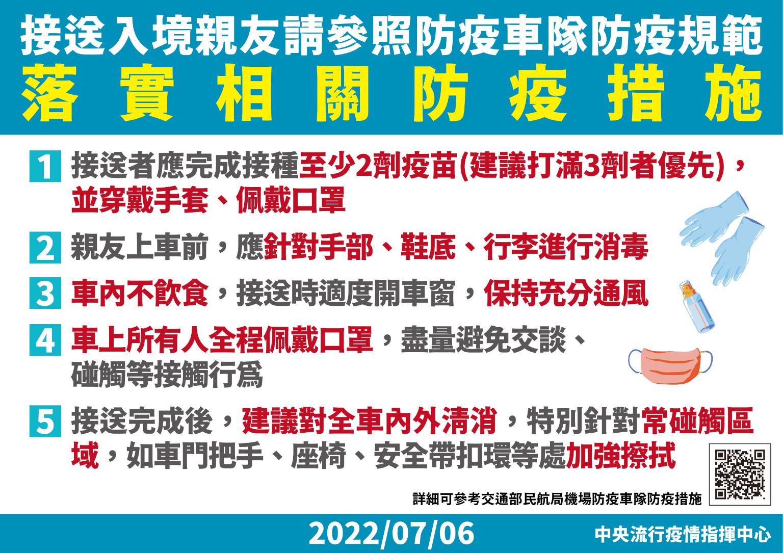 指揮中心提醒,目前國內4名本土個案均研判於接送時感染可能性較高,請民眾接送入境親友時落實下列相關防疫措施,以保護自己和家人: