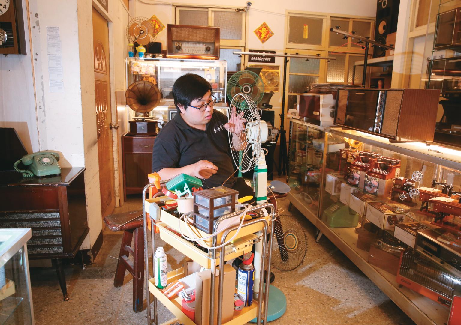 「不管是生活需要或因興趣收藏的家電,花費數千元或許可買到全新、跟上潮流的電器,但找人修理還能再用,不也是維繫感情的方式嗎?」陳祈全一邊轉著復刻的勝利牌留聲機,生動地介紹使用方法,眼裡盡是對老電器的真性情,彷若它未曾老去、壞過,在流瀉的老歌聲裡,人與物彼此的心意再次相通。