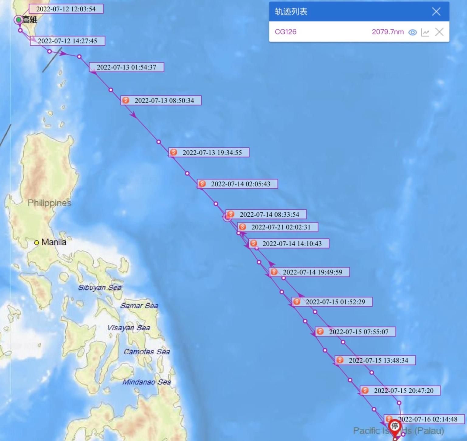 不過,網友經比對中國「船訊網」,竟然將台南艦自12日後出發,16日抵達帛琉海域,再於18日晚間返航的航跡清楚標識。經查詢該網站,台南艦目前正以13.41節的速度朝向高雄回航,詳細掌握且公開披露,推算約於23至24日前後返抵國門。