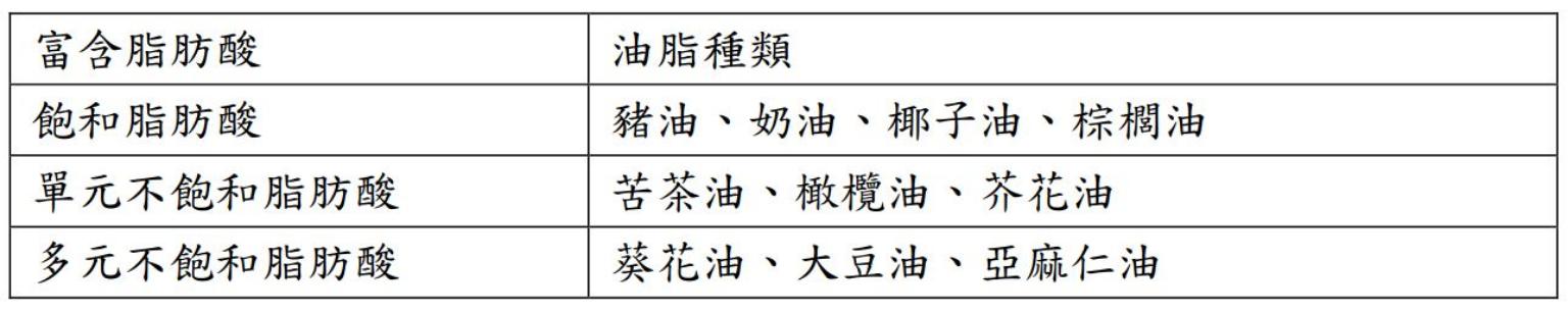 表一 油脂種類
