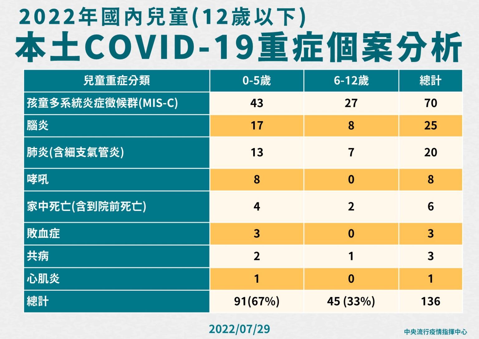 中央流行疫情指揮中心今(29)日公布國內新增23,289例COVID-19確定病例,分別為22,983例本土個案及306例境外移入;另確診個案中新增57例死亡。而中重症再添140例,另增8例MIS-C個案。