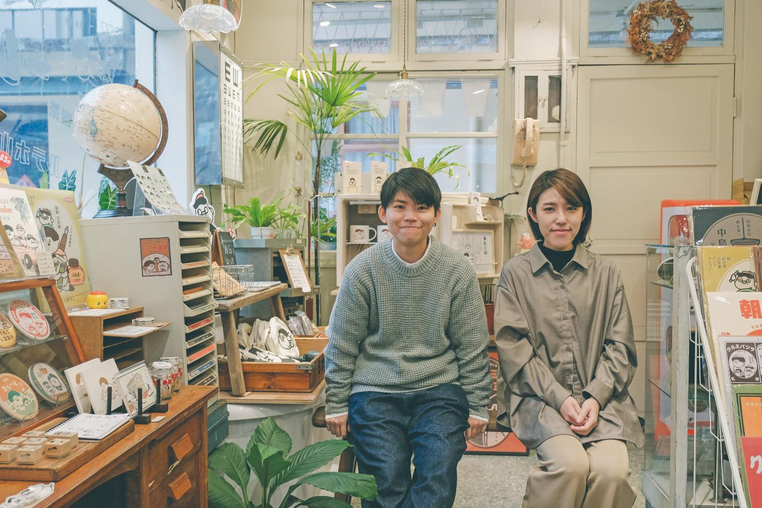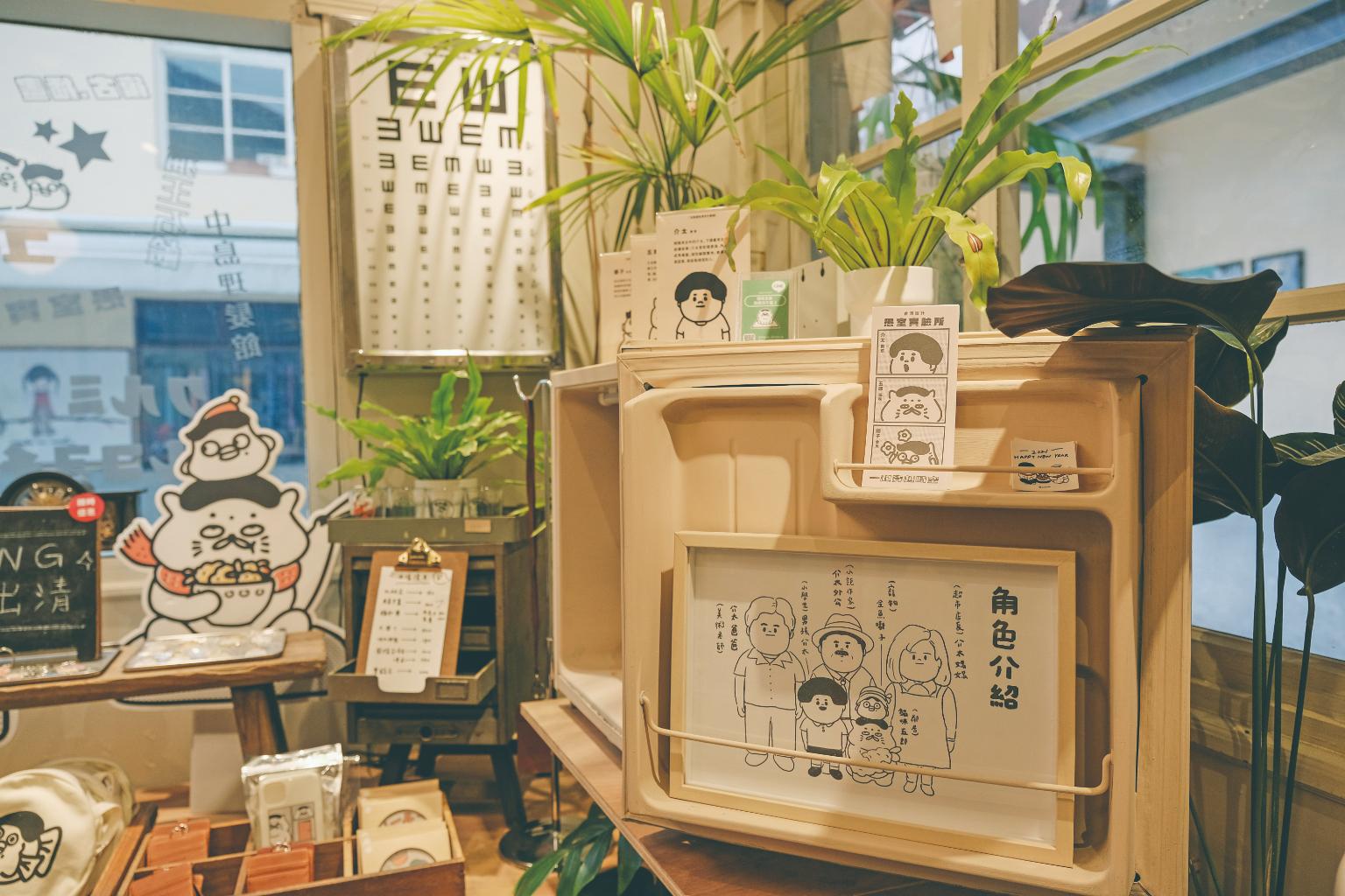 當初擺攤以「愚蠢的人類」為名,這看似中二的命名,源自動物對人類的幻想視角,構想創立品牌後,決定加入「室」的概念,它不只是一個自由發揮的實驗室,也是讓白日夢竄流的時空,「愚室實驗所yushilab」因此定名。落腳審計新村後,他們全力規劃產品線,從留著瓜皮髮型的男主角介太,到最受大家喜愛的個性男貓五郎,還有擁有白日夢超能力的金魚嘟子,每個角色都擁有自己的周邊商品。
