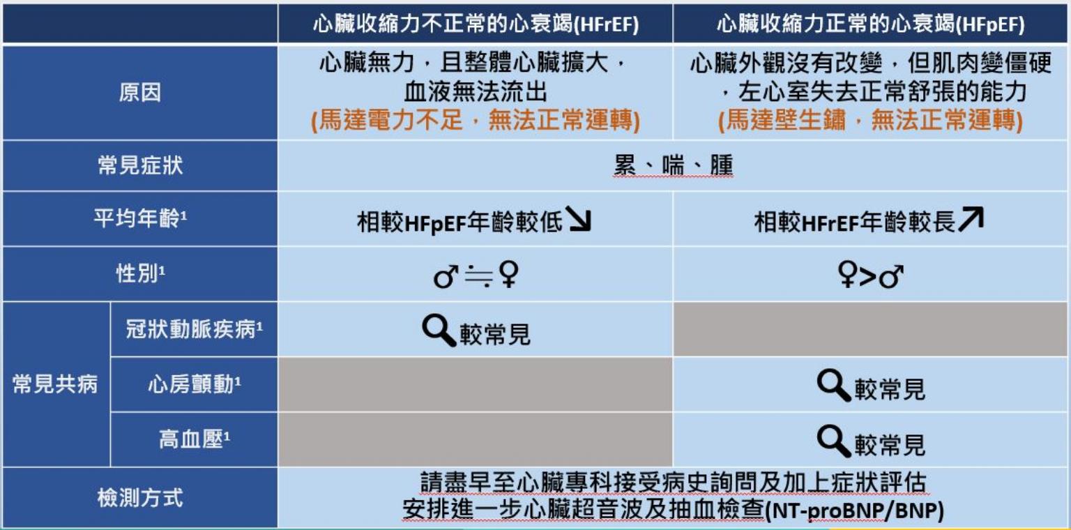 中華民國心臟基金會董事吳彥雯也強調,身體因無法推送足夠的血液,維持身體所需的氧氣和養分,便會引起心衰竭累、喘、腫是最常見的外顯症狀。