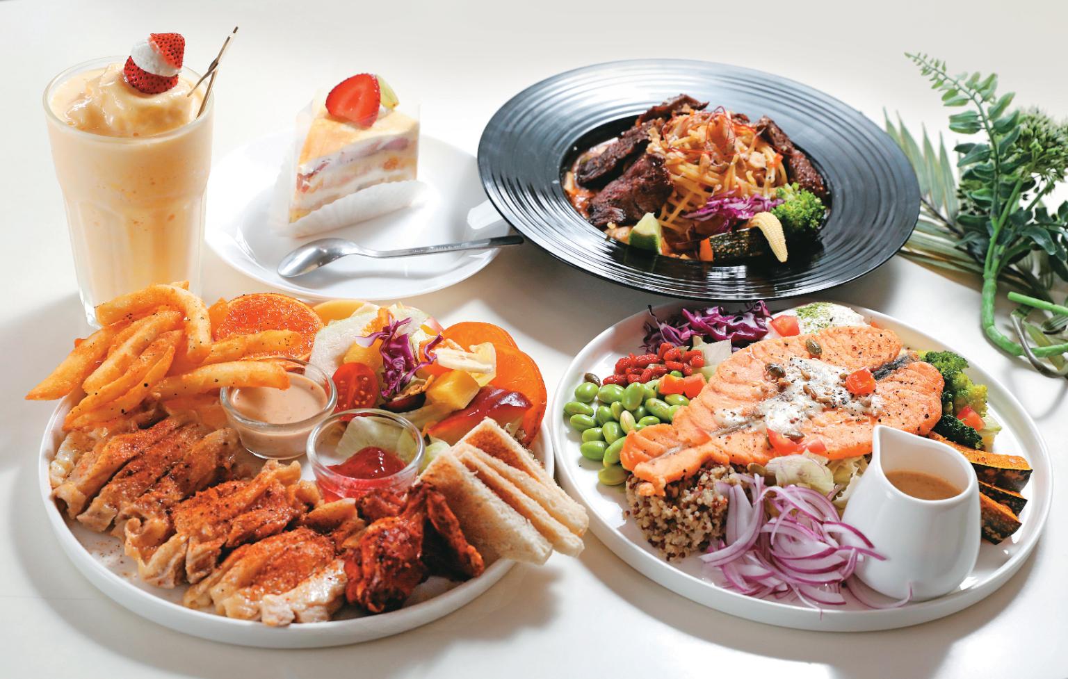 「香嫩鮭魚胡麻沙拉」以挪威鮭魚裹粉油炸,附上濃郁蘑菇醬,搭配繽紛蔬果和特調醬汁,襯出鮭魚的油脂香氣。想大口吃肉的人,不可錯過「香辣泰式牛排麵」,義大利麵使用自家熬煮的泰式醬與多樣香草拌炒,再鋪滿豪氣厚實的煎牛排,酸辣醬汁突顯出牛肉經熟成處理的鮮美,細細咀嚼肉與小麥構成的濃郁味道,最後再點杯解暑的「芒果牛奶果昔」,慢下浮躁心緒,盡情沉浸品嚐盤中美味。