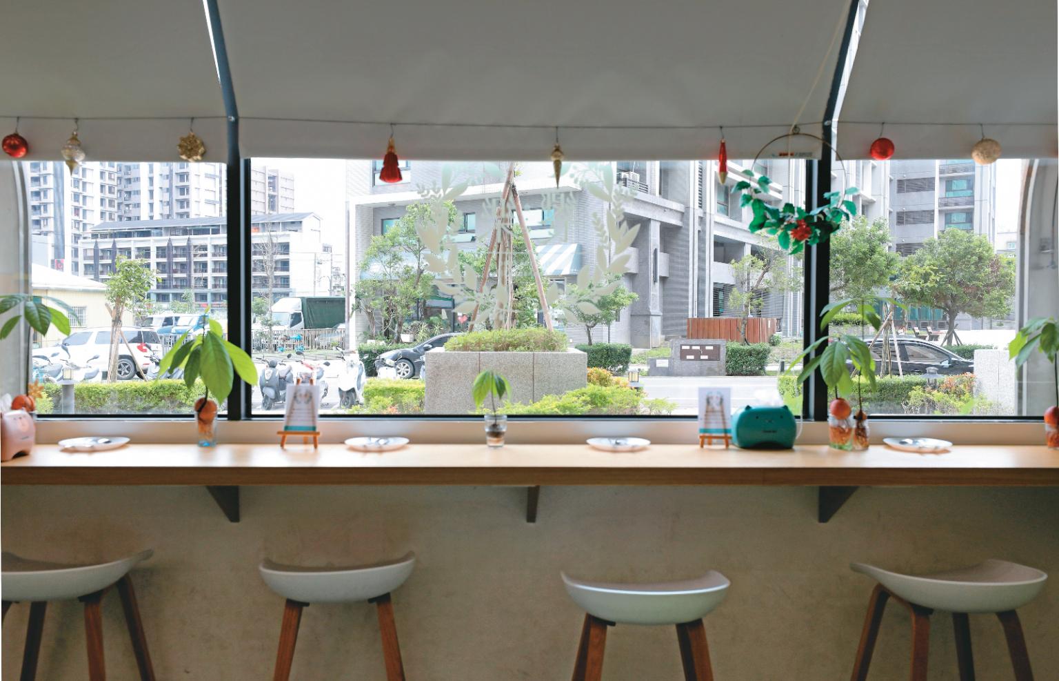 用餐環境呈現乾淨簡單的淺色調,開闊的窗台使空間清新又明亮。