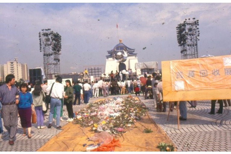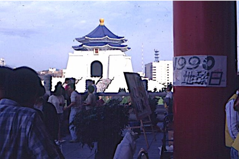 1990地球日台灣中正紀念堂在3月學運結束一個月後,再度站上國際媒體的舞台,這次是廣場上用垃圾堆地的台灣公害地圖,背後是藍頂白牆的中正紀念堂,提醒世人注意台灣面臨的環境問題。此後,我離開了記者生涯,全力投入環保運動,1992年籌辦組團參加民間第一次去巴西里約,參加聯合國地球高峰會(Rio Earth Summit)和民間的全球論壇(Global Forum),讓台灣再次和國際環保運動潮流搭上線,也促使成立了綠色消費者基金會。