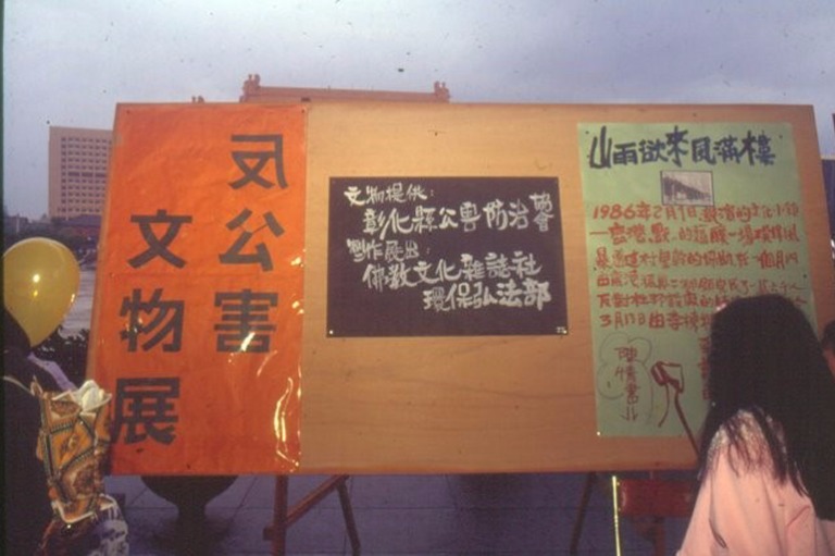 在各方的協助下,4月22日中正紀念堂白天成為「反公害博覽會」,各地舉辦反公害的遊行,晚上的晚會,由胡因夢主持,邀請當年著名的藝人演唱,包括當時正在當兵的張雨生,我還記得他唯一的要求是不要唱「我的未來不是夢」。可惜晚會一半時下大雨,還沒有輪到張雨生唱的時候就被迫結束。