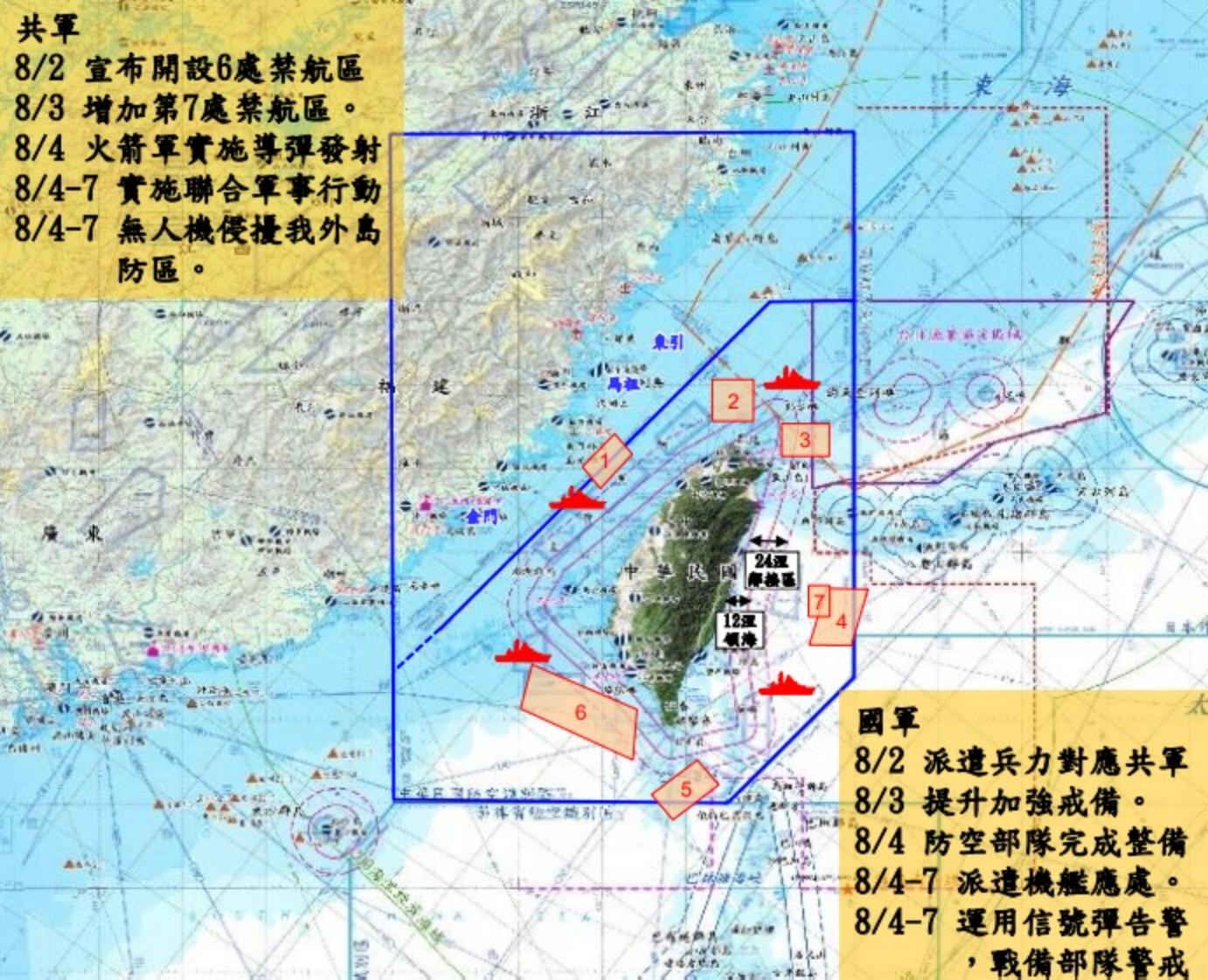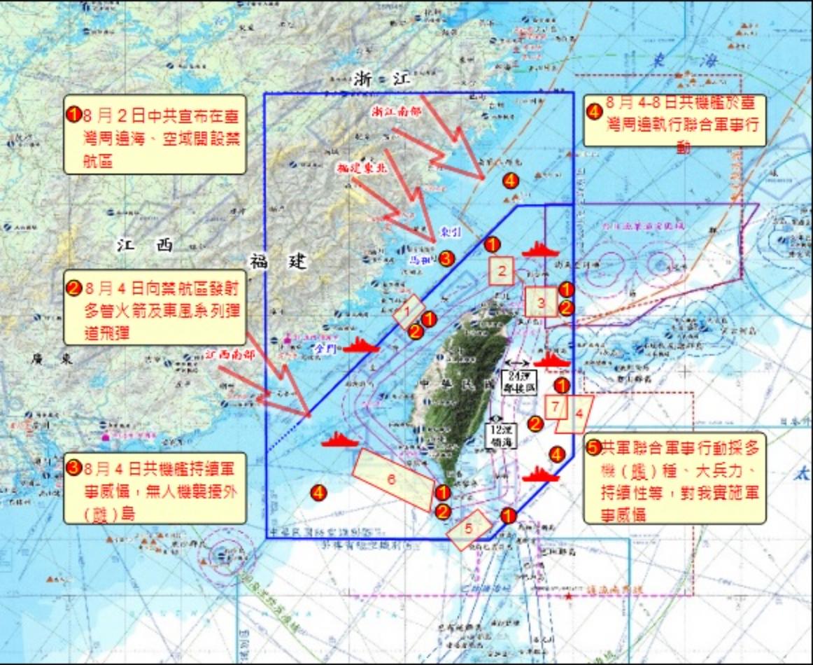 情次室次長顏有賢證實,共軍每日於距離台灣24海浬處,保持13艘作戰艦演習,解放軍空軍也每日派遣戰機對我實施軍事威懾。