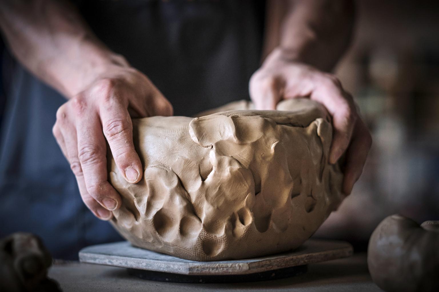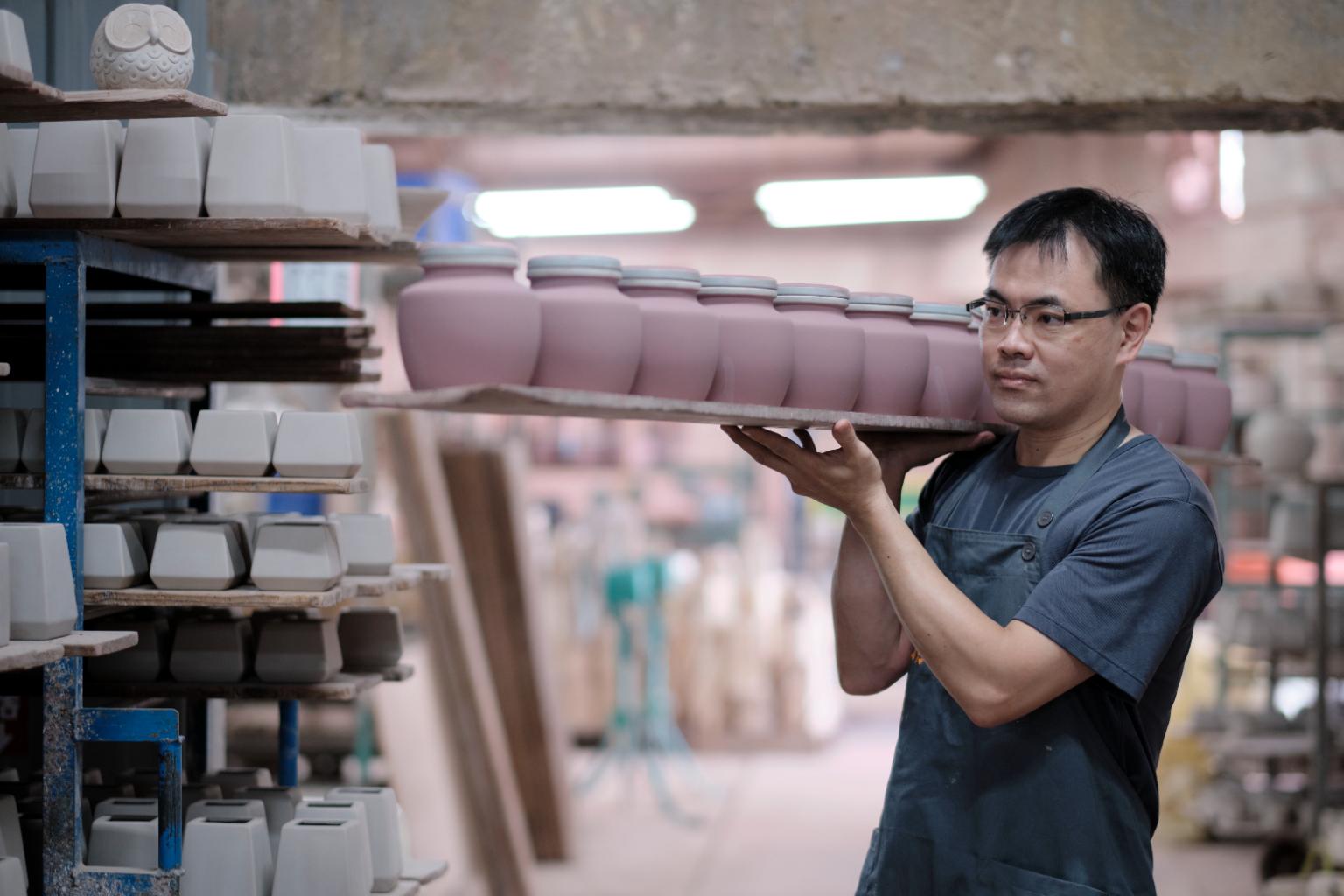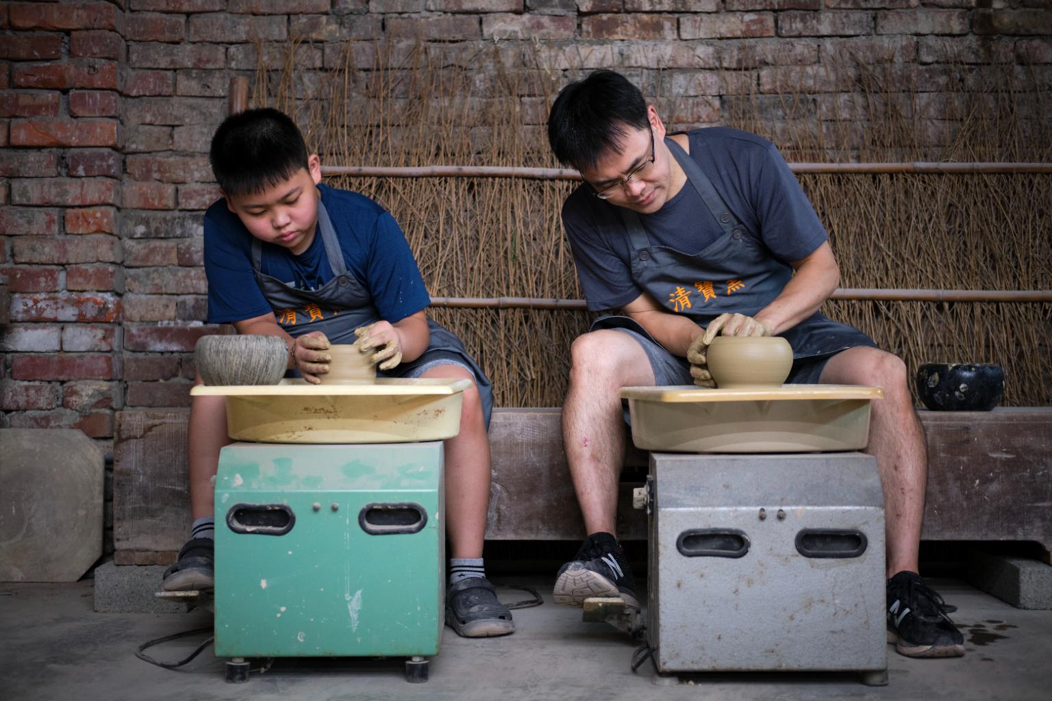已經是第四代接手的清寶窯,本身就很有故事。因父親驟然離世,不捨家業後繼無人的陳毅豪,放棄科技業高薪返鄉接手,卻對燒陶完全沒經驗,只能從零開始摸索,到姊夫的窯場學習所有工序及製程,接著才租廠開始生產製作,由母親負責販賣批發。因科技業講求效率的精神,陳毅豪在廠內逐步建立拉坯、注漿、陶版及鏇坯等完整的生產線,靠著效率與品質接到不少代工的單子,租的廠房經過兩度搬遷,如今現址整個空間、流程更加順暢,還增闢了藝術課程教室。