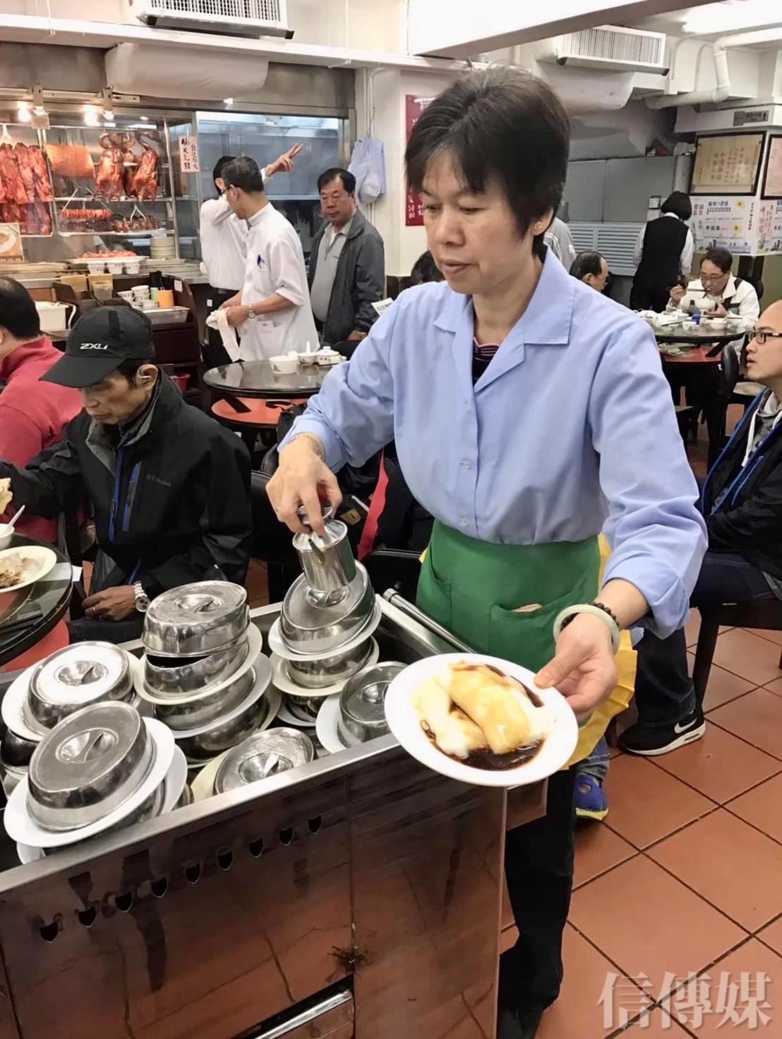 服務員大叔親切地過來招呼我們倆,其實有點驚訝,因為早就有心理準備香港餐廳以快速、效率著稱,只要不被老闆罵都算慶幸?沒想到這名服務員竟如此熱情親切:「跟別人併桌可以嗎?」併桌也是香港餐廳的文化之一,我們當然不囉嗦,立刻讓服務員帶位。