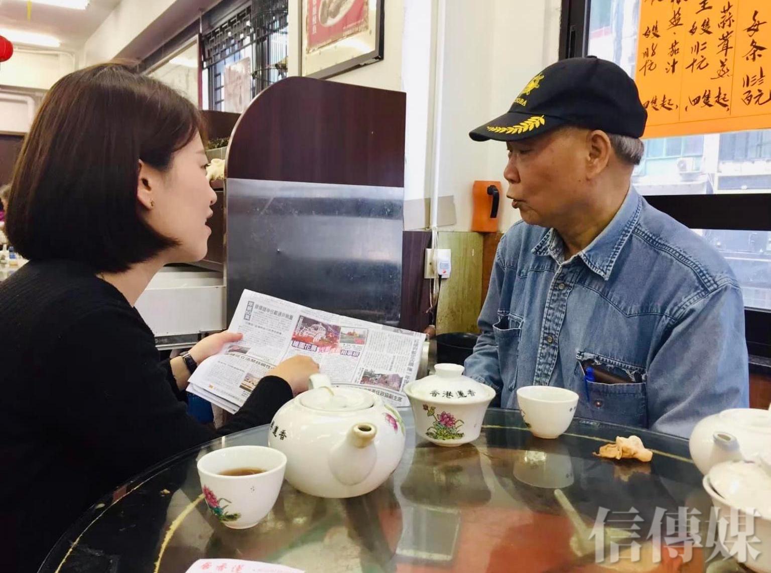 同桌的一位先生戴著老花眼鏡認真在讀報,「哇,就跟我想像中飲茶的場景一樣,我們竟然同桌耶!」我心想。老先生讀完報後,熟練地拿起茶倒在碗裡,把餐具都用茶水洗了一遍,我和朋友靜靜地看著老先生那熟練的儀式,好像在看一場表演。
