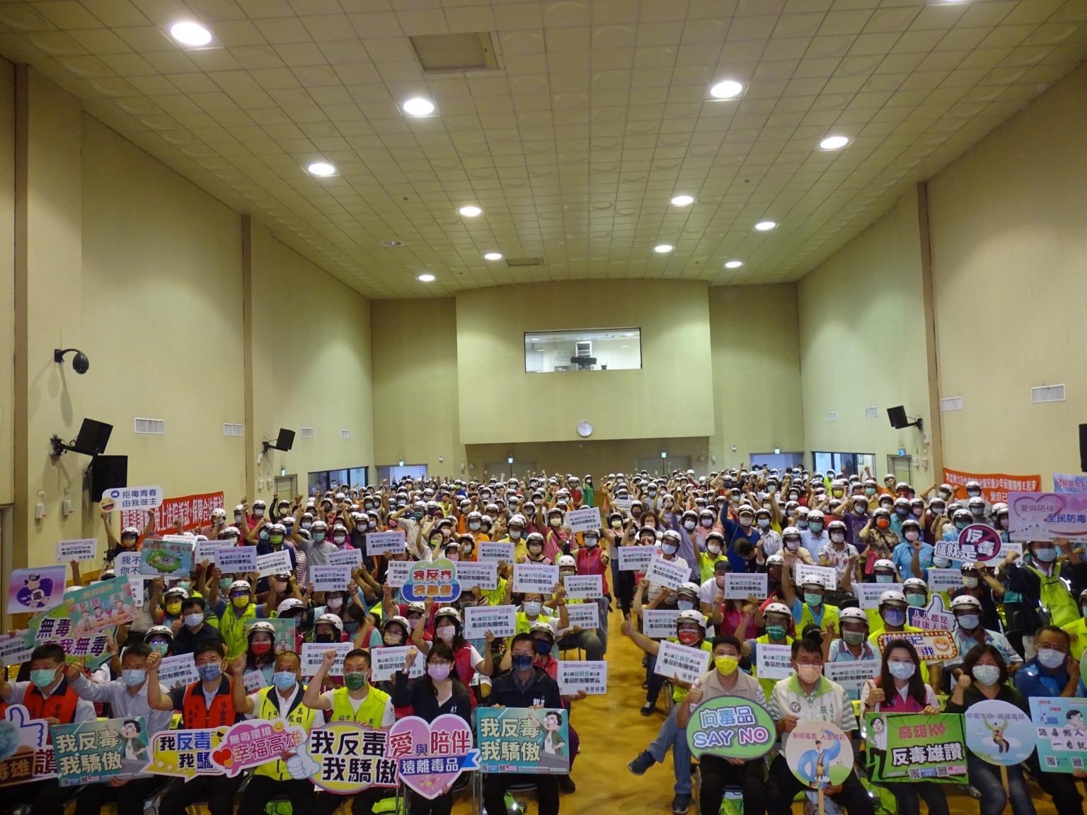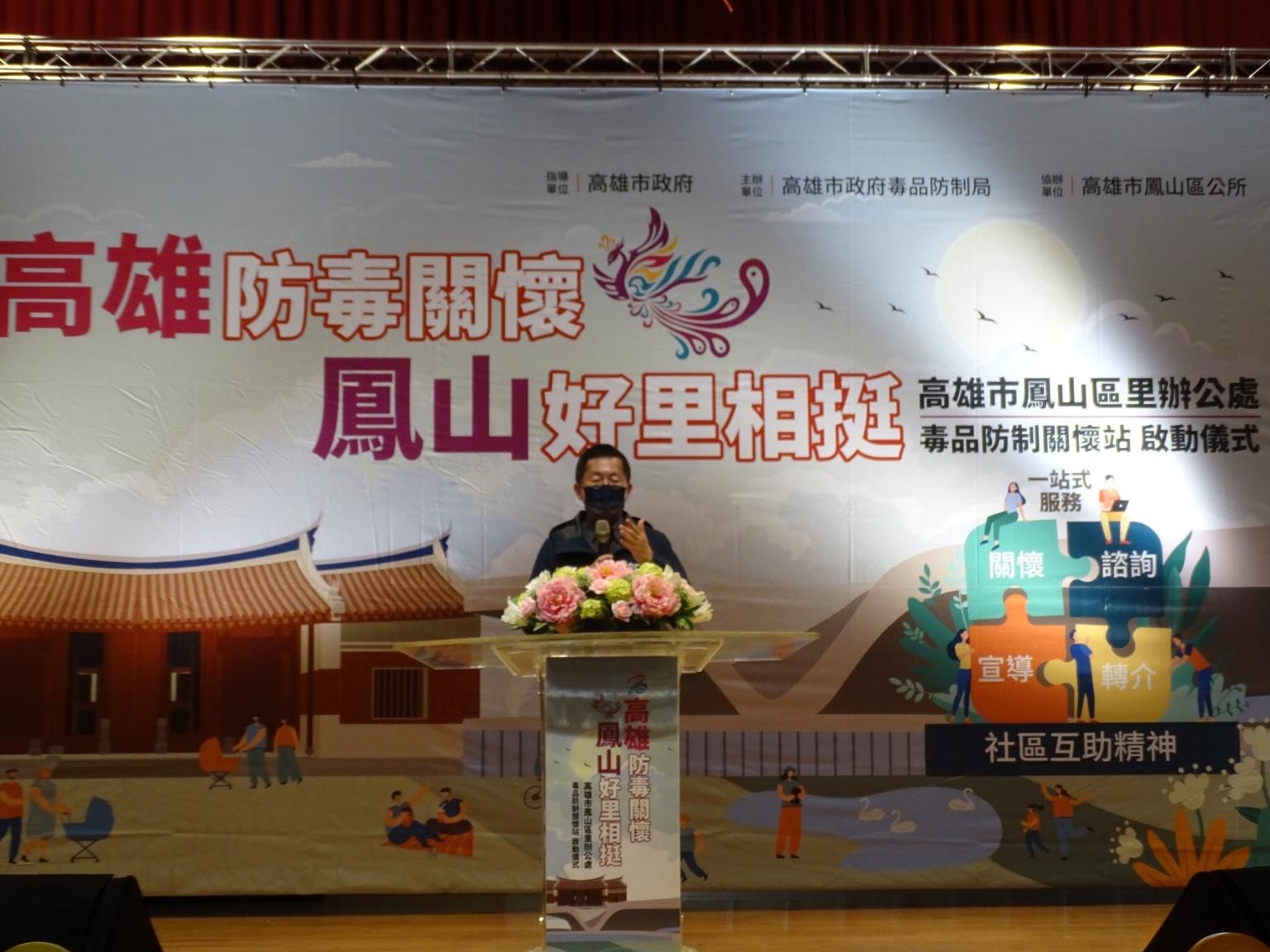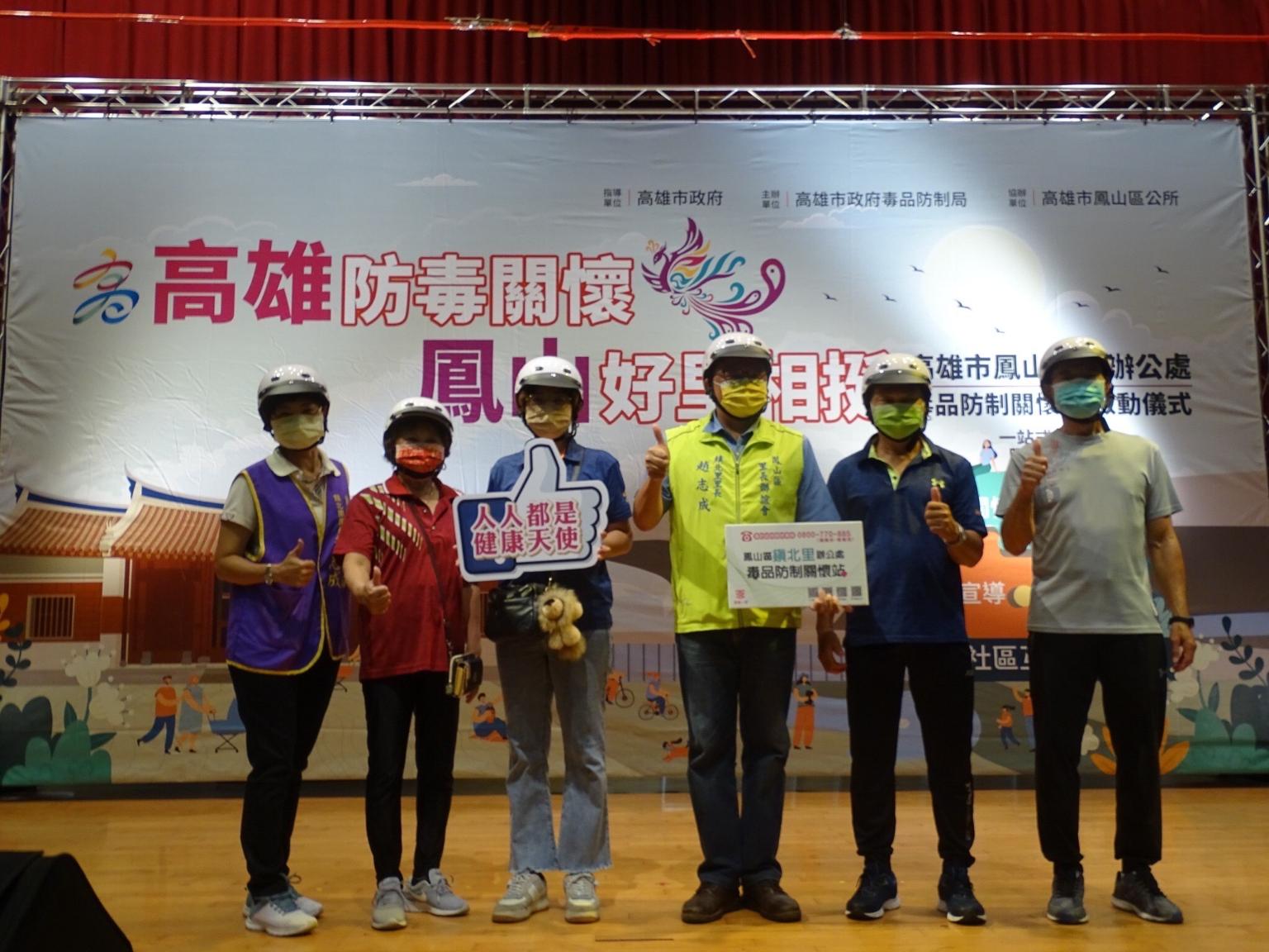 毒防關懷站啟動儀式於鳳山區公所舉行,由高雄市政府郭秘書長添貴親自頒發「里辦公處毒品防制關站」站牌予鳳山區76位里長,由蘇志明里長主席代表受頒,在地議員張漢忠議員、陳慧文議員、李雅靜議員亦親自到場支持這場公益儀式,毒防局林瑩蓉局長、鳳山區石慶豐區長、里長主席聯誼會劉啟芳主席、蘇志明里長主席率領所有里長及鄰長、志工等逾500位里民熱情參與,大家戴上毒防局製作的「反毒雄讚」安全帽,共同宣誓齊力反毒,發揮社區互助精神,打造「社區毒防安全網」,宣誓後隨即進行毒防講習訓練。