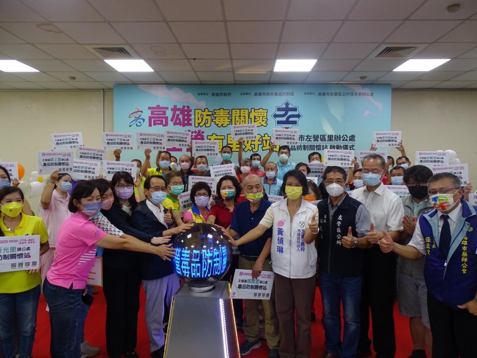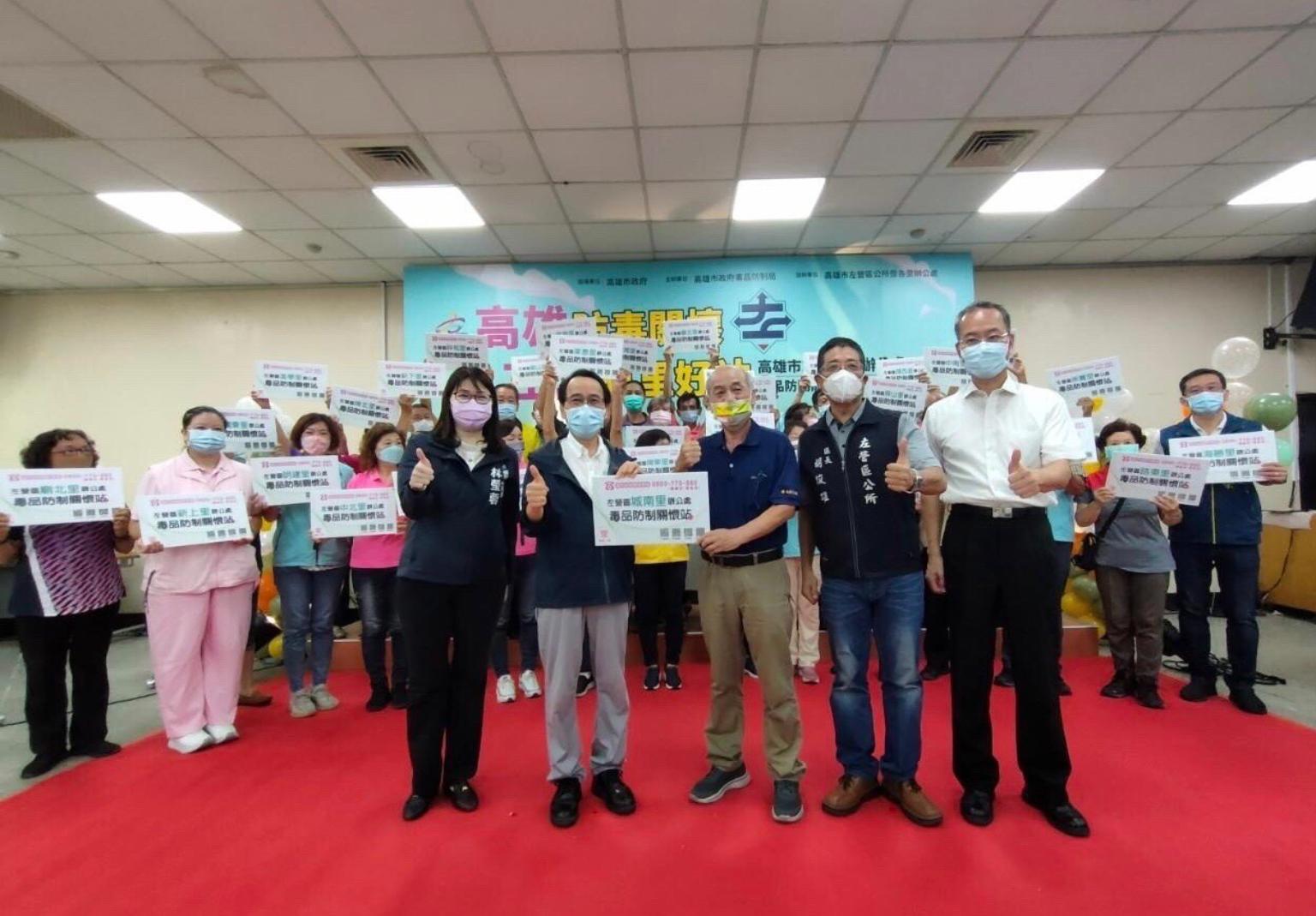 23日上午左營區39位里長齊力相挺成立里辦毒品防制關懷站,由高市府林欽榮副市長率領毒防局林瑩蓉局長、左營區胡俊雄區長及39位里長、鄰長、巡守隊、志工隊等近500位熱心公益里民熱情參與,於左營區公所大禮堂舉行啟動儀式,共同宣示齊力反毒、拒絕毒品,在地議員陳善慧、李眉蓁亦親自到場支持。