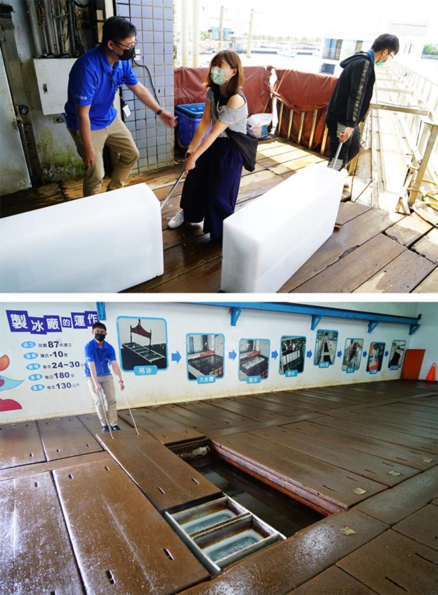 冰磚還不能降溫?下一站,走進漁會冷凍庫,體驗零下25度的極地世界。漁會收購旺季盛產的魚貨,存放於大型冷凍庫,以備在淡季供貨,穩定魚產價格。一開始感受不到酷寒威力,導覽人員拿出一張濕紙巾,空中甩兩下,原本柔軟的紙巾立刻凝結變硬,待他解說完畢,已經冷到想念戶外陽光了。