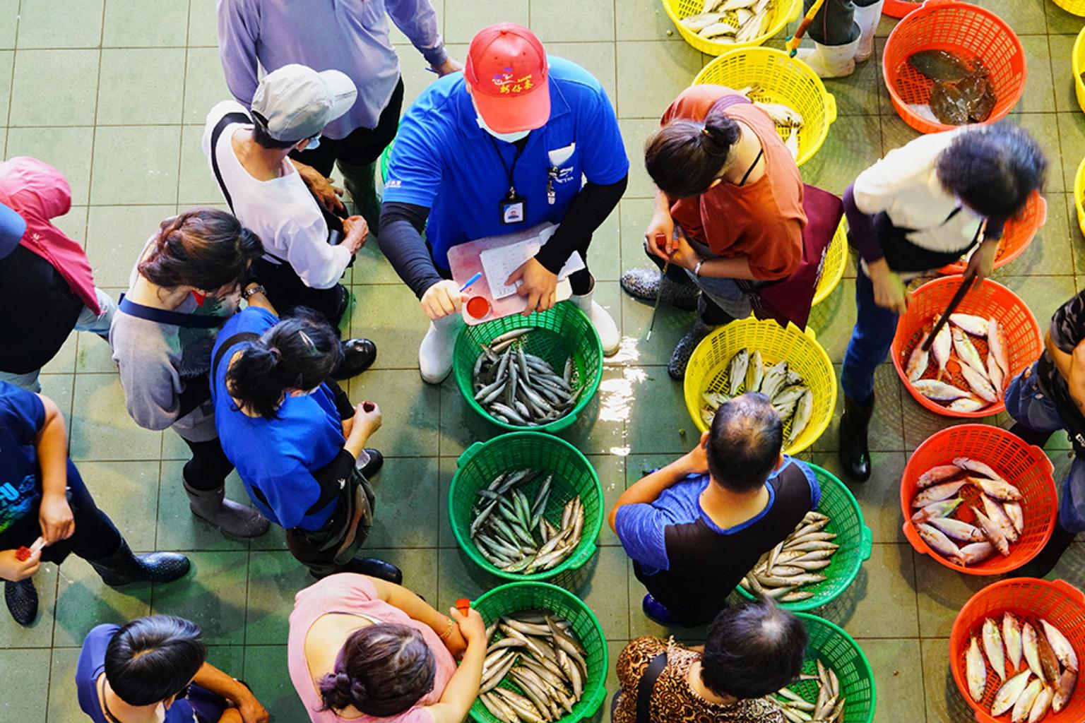 行程最後來到魚貨直銷中心,凌晨出海的漁船正好返港卸貨,每天11點半舉行現撈魚貨拍賣,當季魚貨閃耀新鮮光澤,叫賣吆喝聲此起彼落,交織蚵仔寮漁港最生猛的風情。