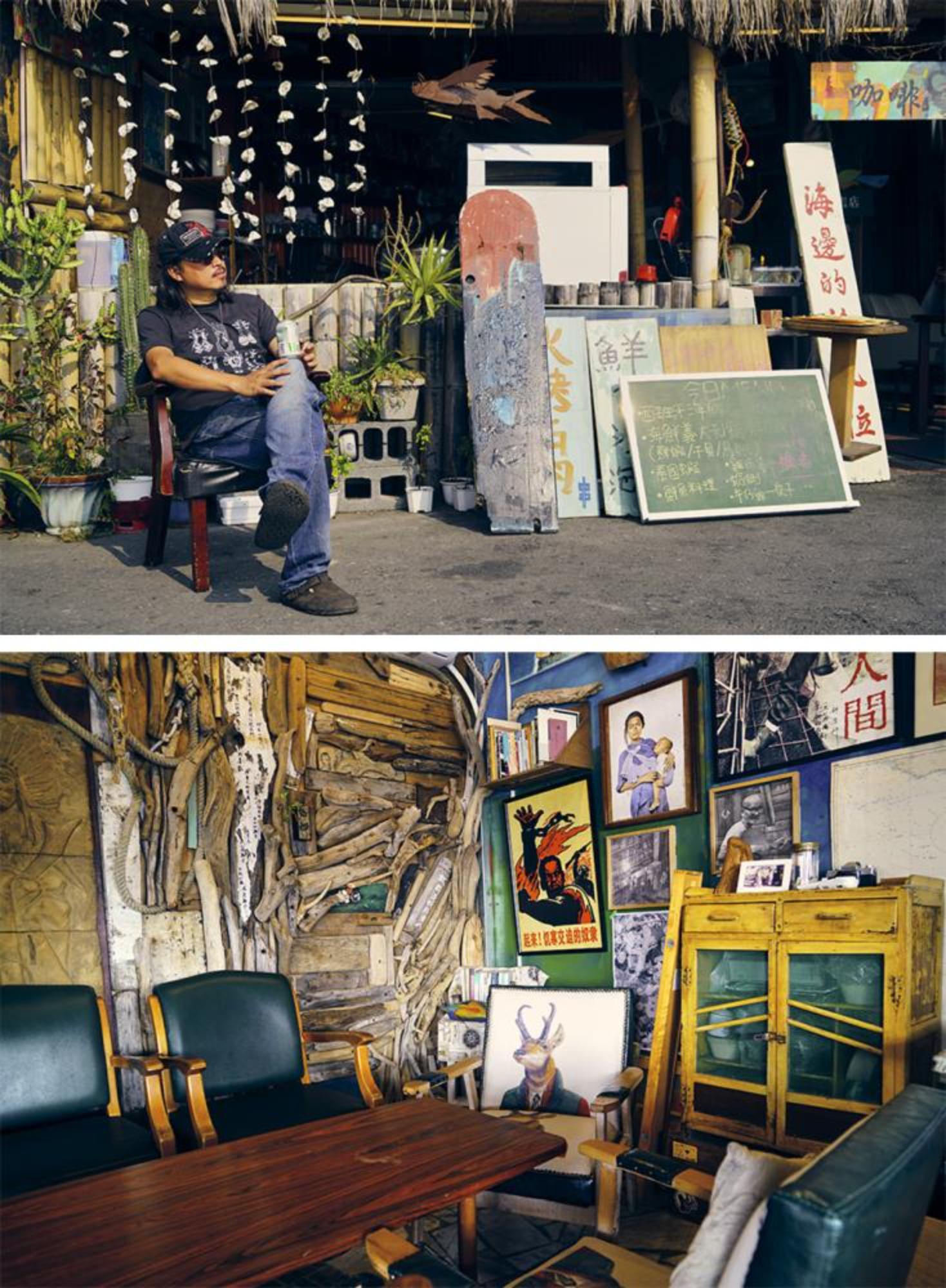穿越一整排海鮮熱炒店,在緊鄰漁港的竹寮前停下腳步,茅草屋頂下,戶外爐台溢散食物香氣,路邊被遺棄的神明桌改裝吧台,吊橋淘汰的木板變身戶外長桌,坐在粗獷的手作餐桌前,自然也無需拘束。蚵仔寮的日落打亮一片金黃,牆上格瓦拉的頭像似乎宣示一種態度,改變即將發生…