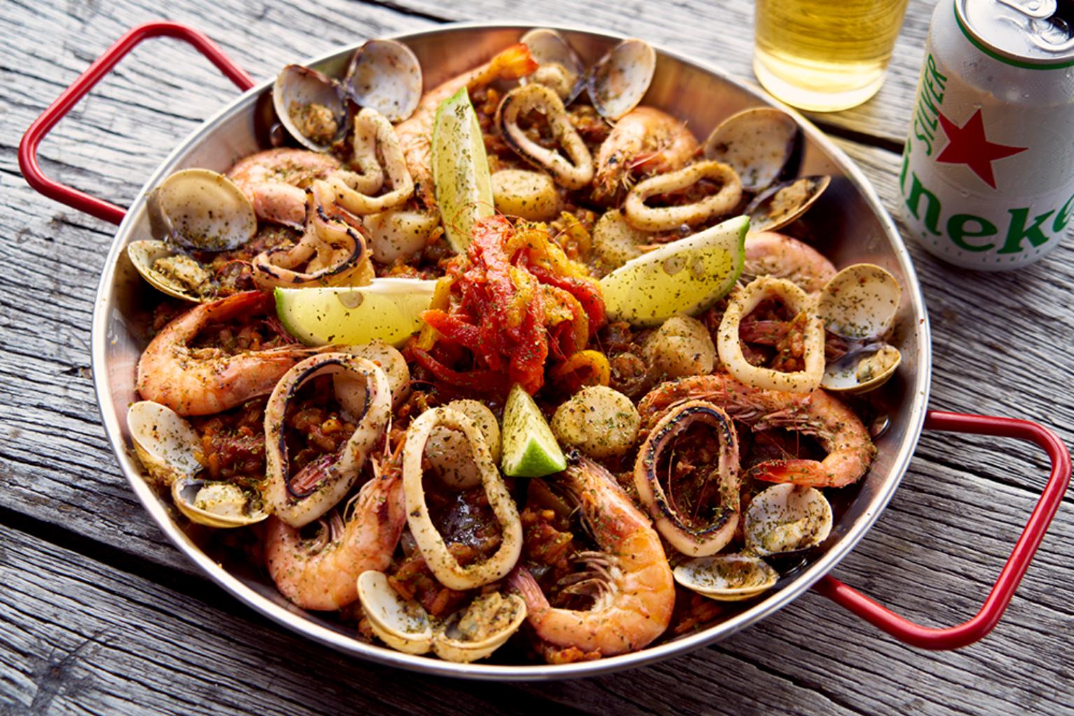 閱讀海洋文化,同時加點海鮮文化滿足口腹之慾,一盤用料澎湃的西班牙海鮮燉飯,搭配午仔魚一夜干,再來點酒精加持,蚵仔寮的慵懶盡濃縮在此刻。