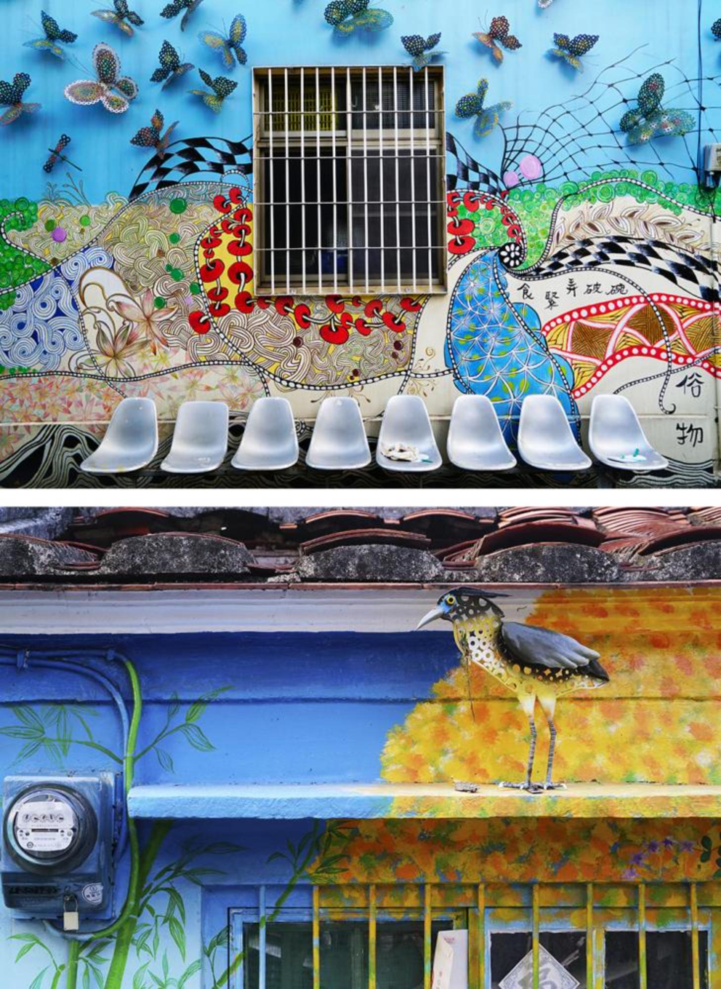 為了美化社區,梓平藉農村再生計畫邀三地門的雕塑師指導志工創作,把當地螺絲工廠淘汰的廢品變成翩翩飛舞的蝴蝶和蜻蜓,並動員居民參與,彩繪纏繞畫。藝術妝點街區巷弄,小鎮的365天都是春天。