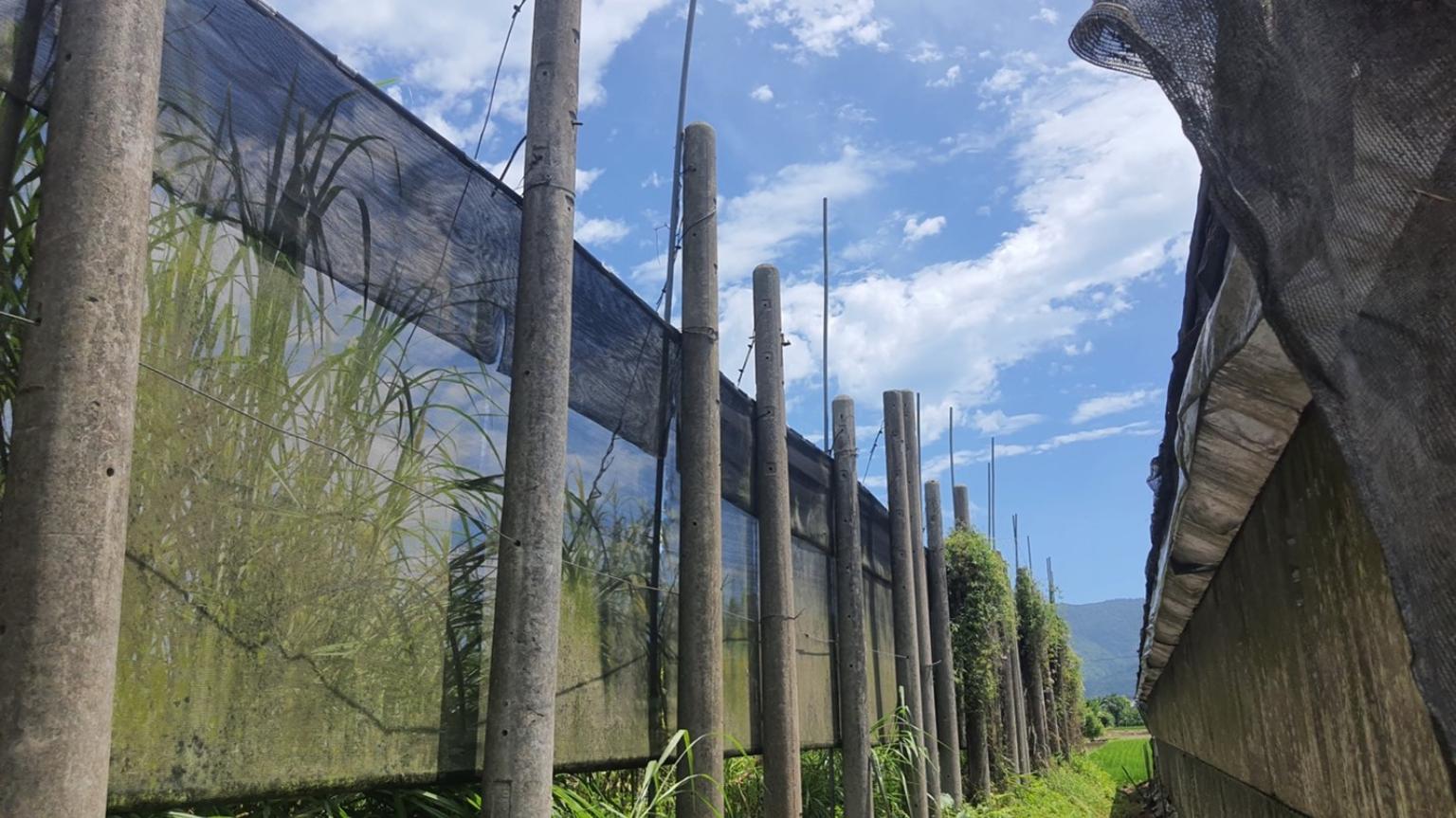 江玉寶也不吝分享他的秘訣:30根電線桿和百吉布(一種黑色,韌性很高的網子)。