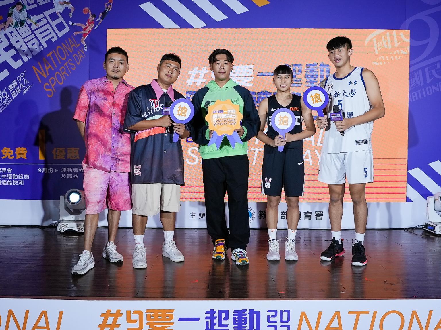 教育部體育署24日舉辦「111年度國民體育日」啟動記者會,特別邀請到110學年度HBL MVP陳將双、李恩芯,與最親民的本土天團玖壹壹,共同擔任111年度國民體育日代言人,首度合作拍攝宣傳影片,並於今日啟動記者正式公開亮相,邀請大家一起「運動99、健康久久」。