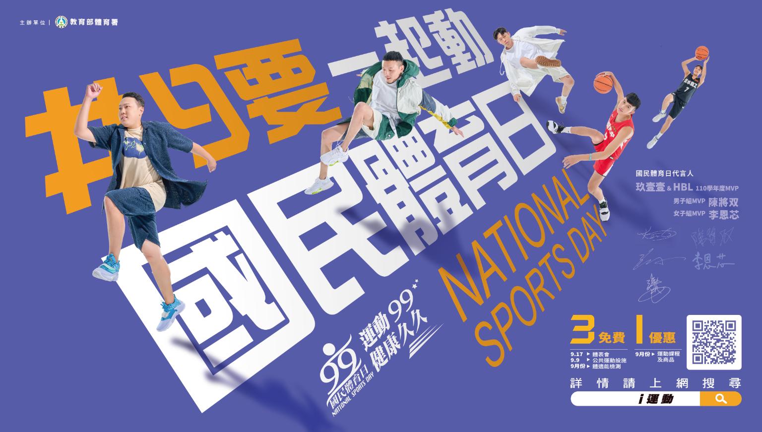 體育署表示,國體法明訂9月9日為國民體育日,就是要向民眾傳達;無論是任何年齡、任何工作領域的人,都應保持良好、規律的運動習慣,才能常保身心健康。111年度國民體育日相關活動詳情請上網搜尋「i運動」或至i運動FB粉絲團查詢。(教育部體育署廣告)