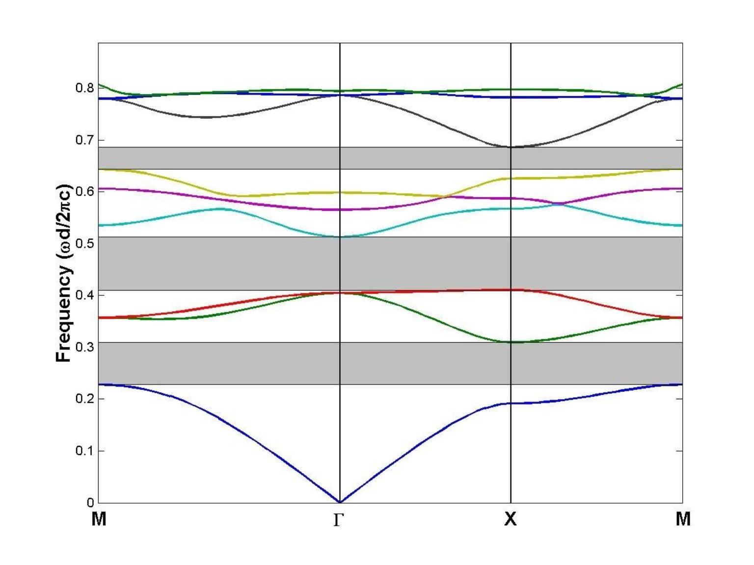 這種高維規則光學結構直到大約 30 年前才被提出來,1987年,埃利·雅布羅諾維奇(Eli Yablonovitch)和薩耶夫·約翰(Sajeev John)分別發表研究:雅布羅諾維奇的出發點是想要製造一種材料來把光鎖在共振腔裡,就能跟原子不斷產生交互作用,以便應用在雷射技術上;約翰則是想先藉由週期介質產生能隙,再微微弄亂此結構,來實現光波的安德森局域化(Anderson Localization)。至此,科學界才跳脫以往一維多層膜結構的思維模式往高維度發展。