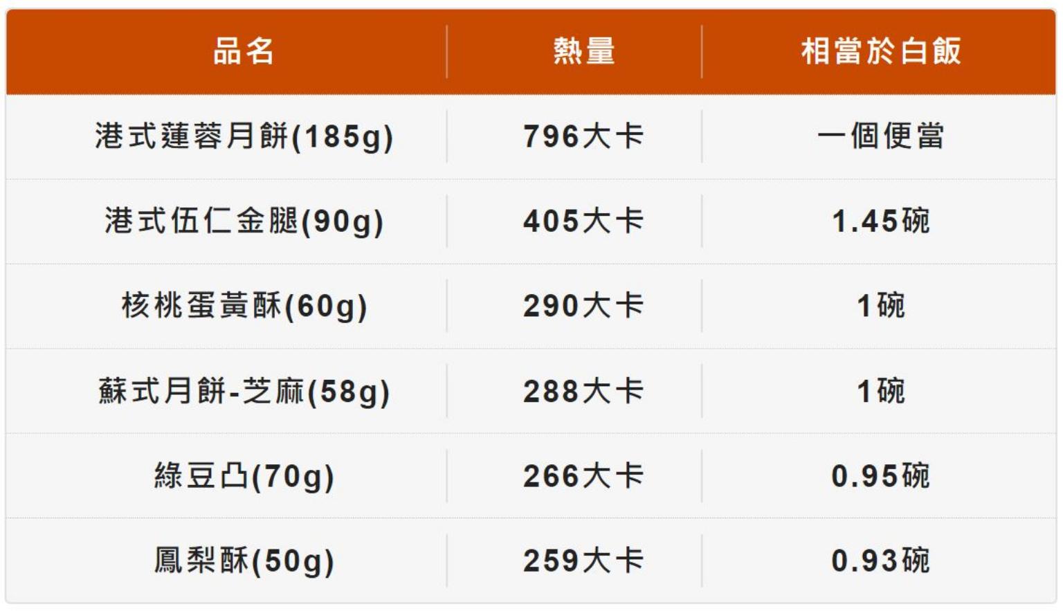 北投健康管理醫院營養師潘富子指出,「別小看月餅雖體積小,但熱量可不小!」國健署也指出,一般月餅熱量較高,過多食用容易增加身體的負擔,因此建議民眾優先購買熱量較低的月餅。