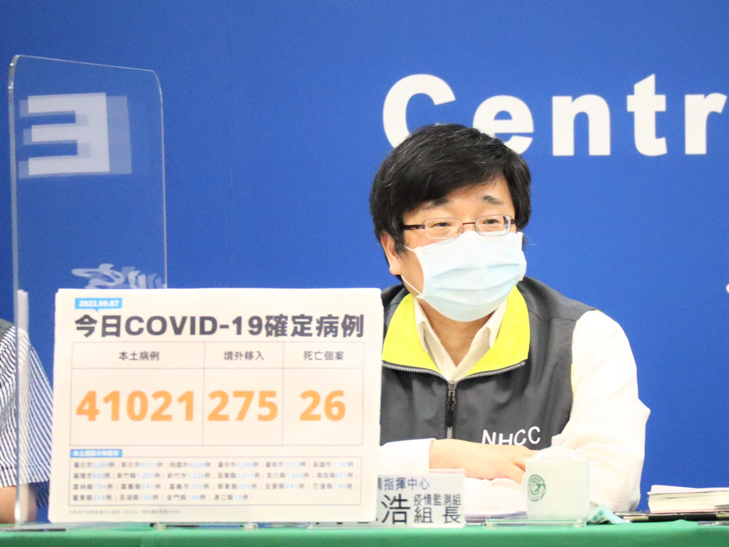 中央流行疫情指揮中心今(7)日公布國內新增41,296例COVID-19確定病例,分別為41,021例本土個案及275例境外移入;另確診個案中新增26例死亡。