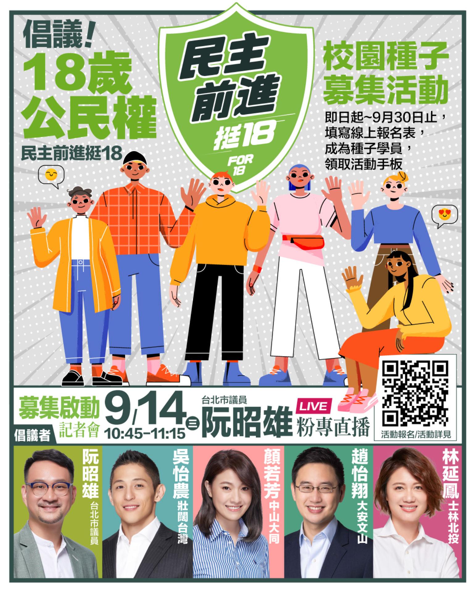 蔡沐霖強調,18歲公民權的推動,需要所有政黨一起來合作,民進黨21個縣市長參選人都已經表態,且縣市議員參選人也都表態,甚至今(14)日在台北就有議員參選人聯合挺18歲公民權活動,「國民黨縣市長參選人應該表態,大家一起來加油!」