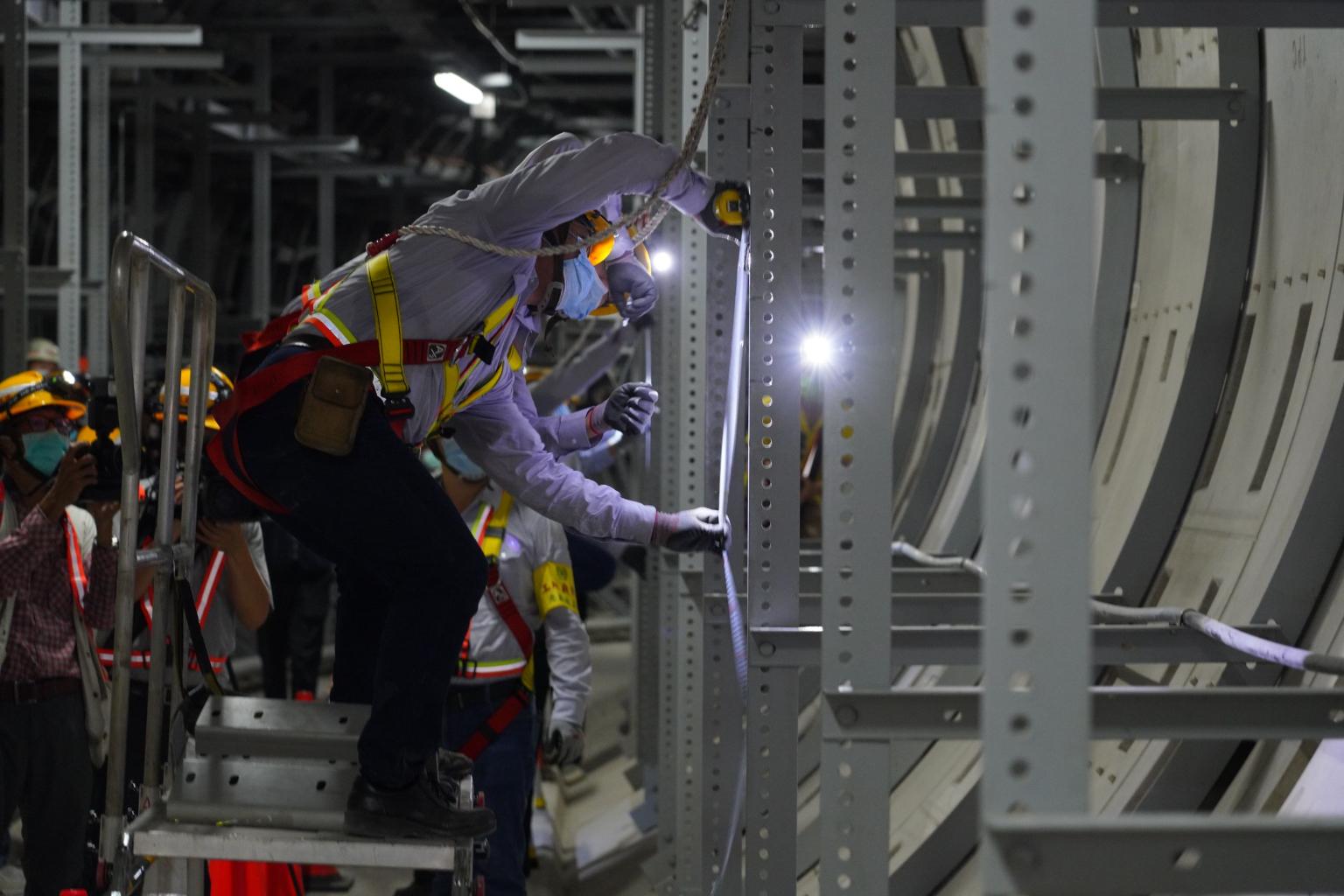 同時,施工環境也是一大考驗,光是「鑽地」爬階梯到50米深的洞道就相當考驗體力,加上空間侷限、空氣品質較差,且這項工程採用「冰凍工法」,將冷凍管埋入地下,讓地下凍土維持在約負10度的狀態,因此工程人員須在零下的低溫中工作。
