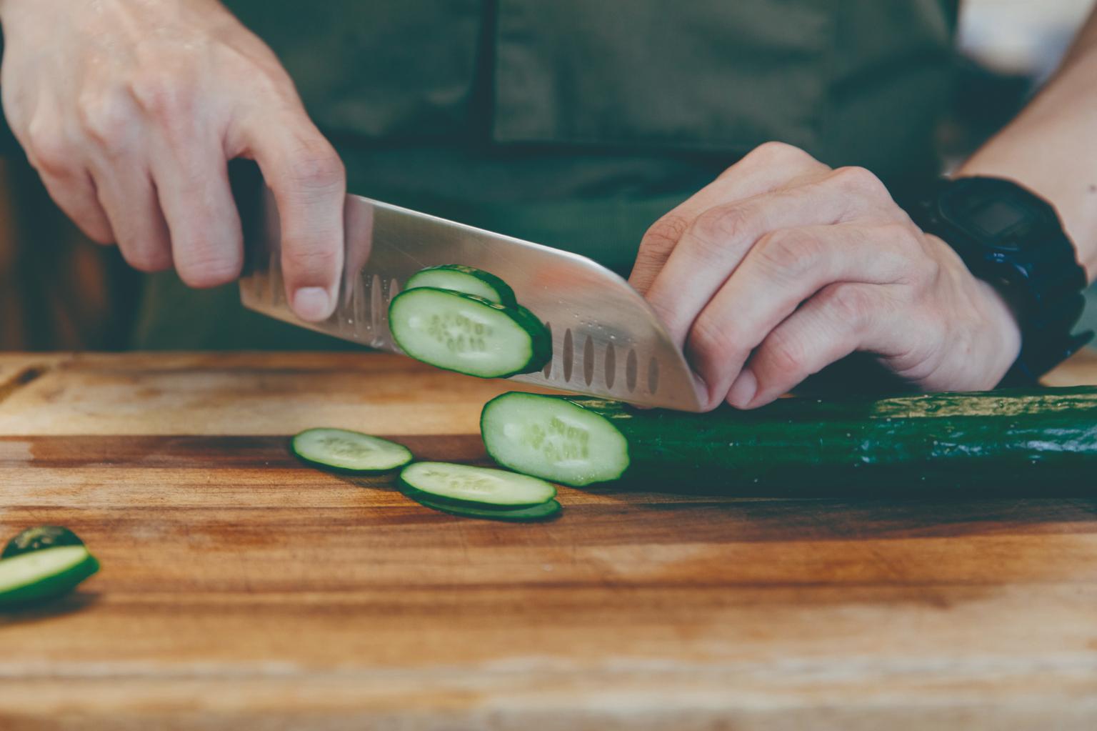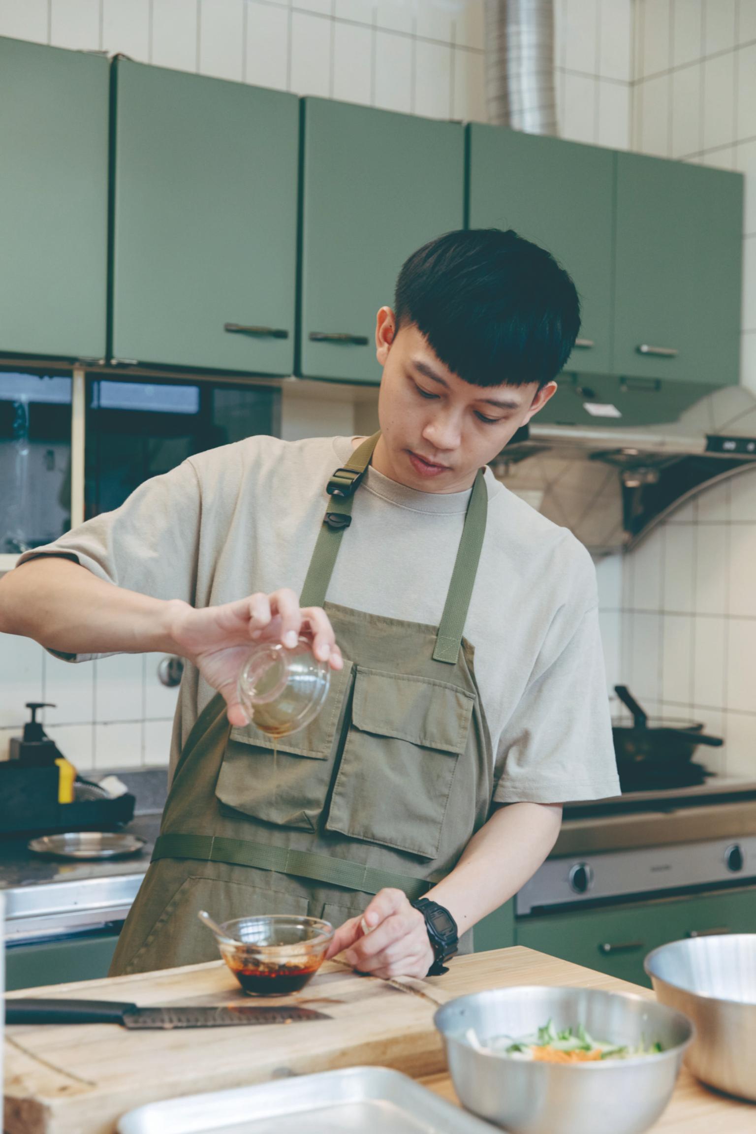 Ayo認為涼拌菜的料理方式就是要簡單、不複雜。以葉菜類來說,他通常會以清燙方式將其快速煮熟後,再拌入醬料增添風味;至於綠竹筍,可用水煮或燒烤方式鎖住清甜再冷卻備用;而瓜類則可先抓拌鹽、糖,待其出水後再擰乾去除水分,並與糖、醋、蒜頭、辣椒等共同浸漬2至3天,透過這樣的「淺漬」手法,能讓瓜類吃起來更加爽脆,無論直接享用、作為沙拉配料,或搭配油脂豐厚的香腸、煎肉,都非常美味。