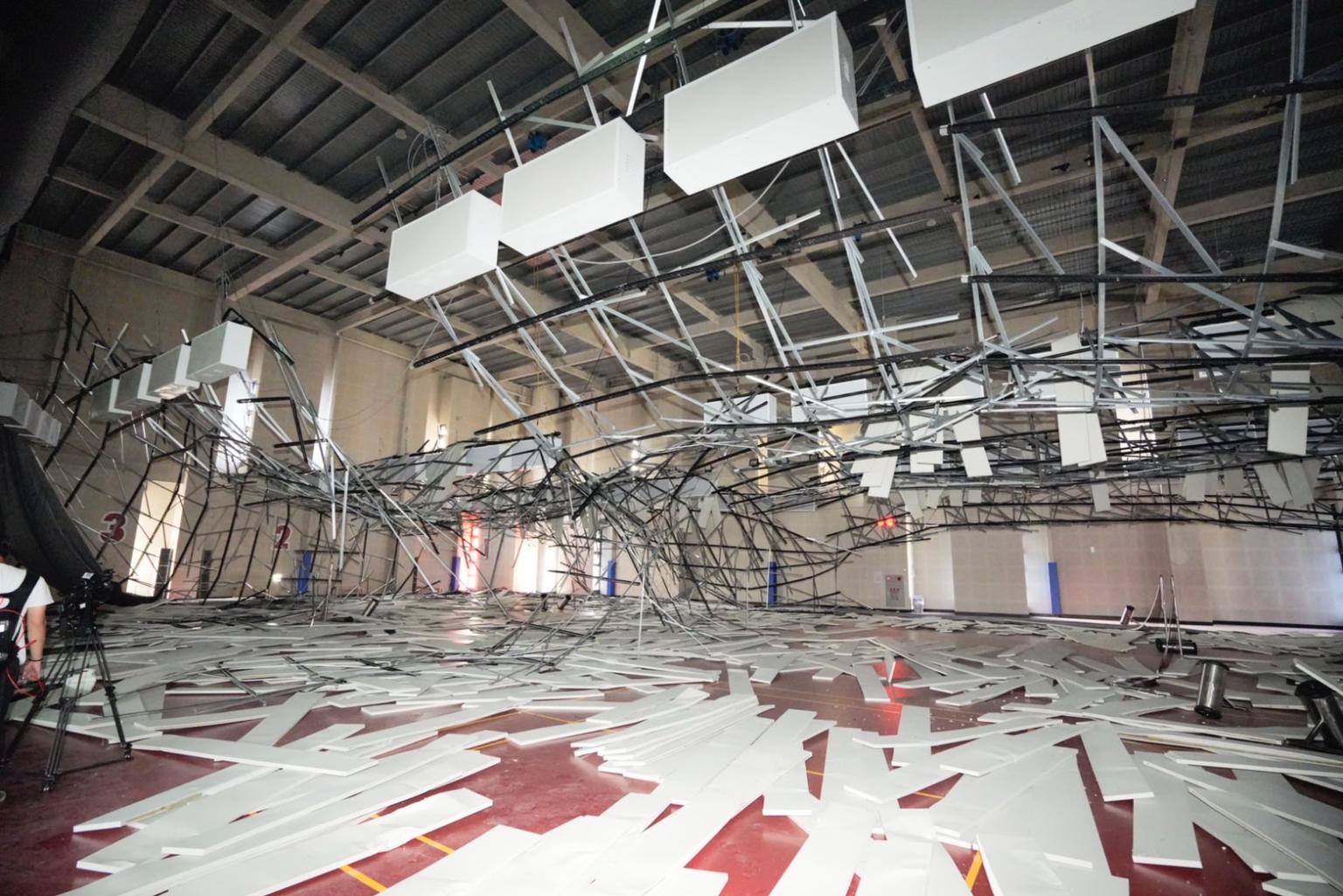 桃園羽球場才剛完成裝潢隔天,就因地震發生5樓天花板倒塌事件,當時有10多位打球民眾拔腿狂奔逃命,其中一人遭到砸傷;網友立即聯想到新竹棒球場事件,大酸:「12億品質」。