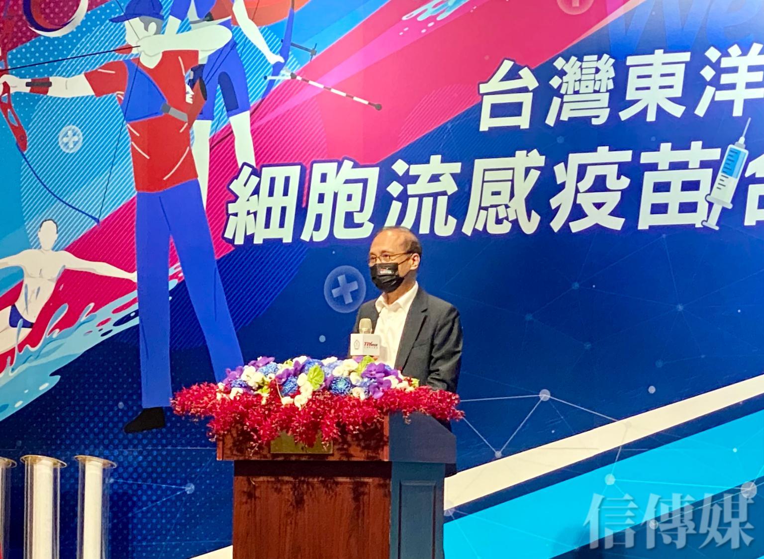 東洋董事長林全出席記者會表示,台灣從2016年奪得一金二銅,到去年東京奧運奪得史上最佳的「2金4銀6銅」備感榮幸,也希望身為國民能在任何地方幫助到選手,「很感謝中華奧會的牽引,讓我們有機會提供1000劑細胞流感疫苗,讓運動員更健康完成賽事。」