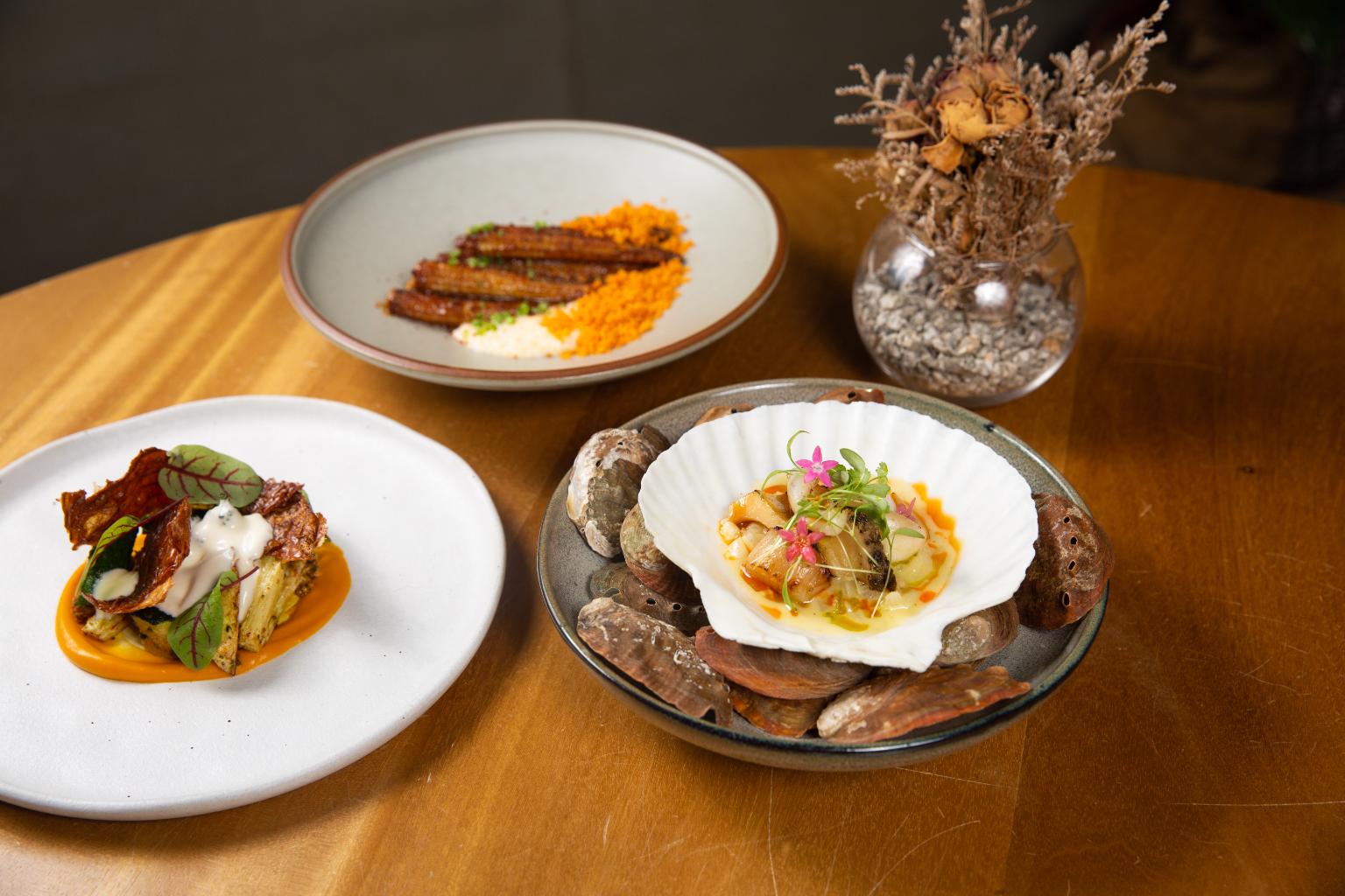 說到法式料理,淡菜是頗具代表性的食材,常見如白酒淡菜鍋、炒淡菜等,林昆霈則以窯燒、炭烤處理,搭配香料及蒜香奶油,凸顯食材本身的鮮美。店內並不時推出令人驚喜的創意料理,如夜市小吃「燒番麥」,林昆霈分享,靈感來自與母親逛菜市場時,途經燒番麥攤販受到激發,他將玉米筍炭烤後,搭配辣椒、巴西里等香料和起司玉米醬、祕方醬汁,再撒上人氣零食「多力多滋」磨成的餅乾粉,為這道料理增添神來一筆。