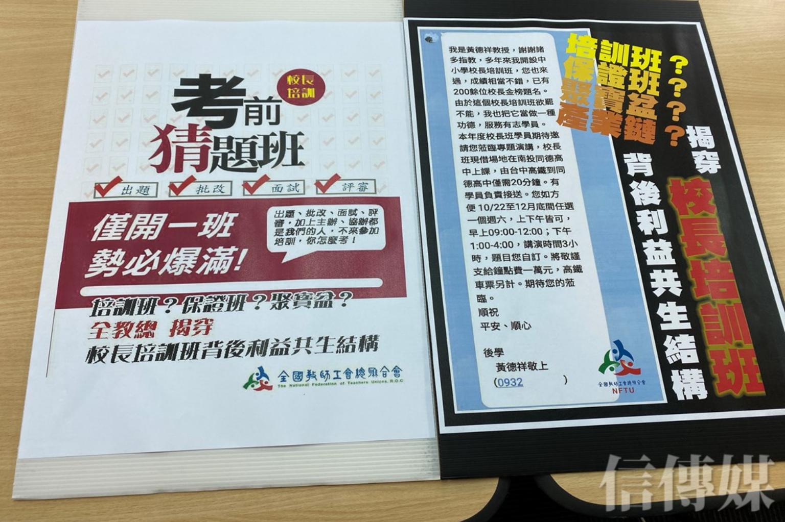 全國教師工會總聯合會今(27)日揭露,大葉大學教育專業發展研究所榮譽講座教授黃德祥以個人名稱開設「中小學校長主任培訓班」,每位學員收費高達36000元,且培訓班講座名單陣容堅強,包括台灣教育大學系統總校長、前教育部長吳清基、台北市政府副市長蔡炳坤等,宛如利益共生的校長生產工廠,而黃德祥就是校長工廠的廠長。