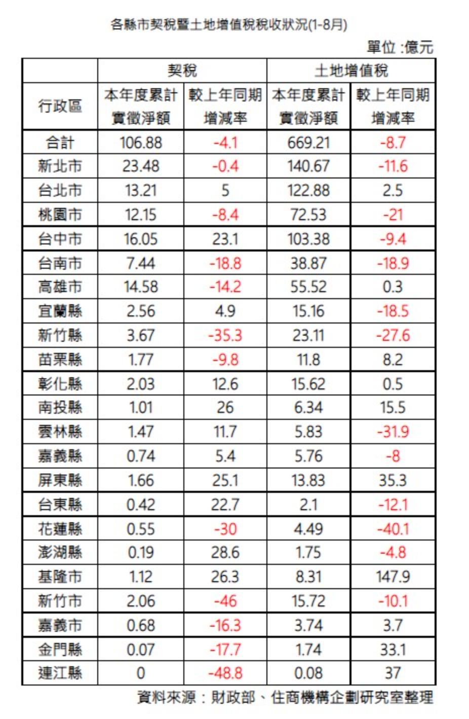 根據財政部最新資料,全國1到8月份契稅與土地增值稅雙雙減少,其中契稅累計實徵金額達106.88億,比去年減少4.1%;土地增值稅為669.21億,比去年萎縮8.7%。