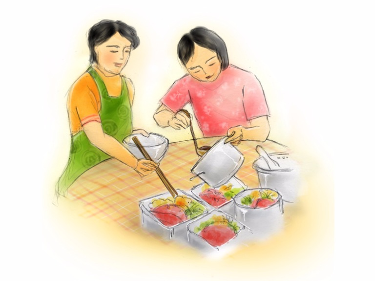 福建家庭做的,當然有他們的拿手好戲:包薄餅。可不能小看,至少得兩三天準備,把蔬菜炒了又炒。各種配料,當中不能缺少的是虎苔,那是一種味道極為鮮美的紫菜。除了做法,還得教吃法。最古老的,是包薄餅時留下一個口,把蔬菜中的湯汁倒入。這一點,鮮為人知。吃完薄餅,在傳統上得配白粥。