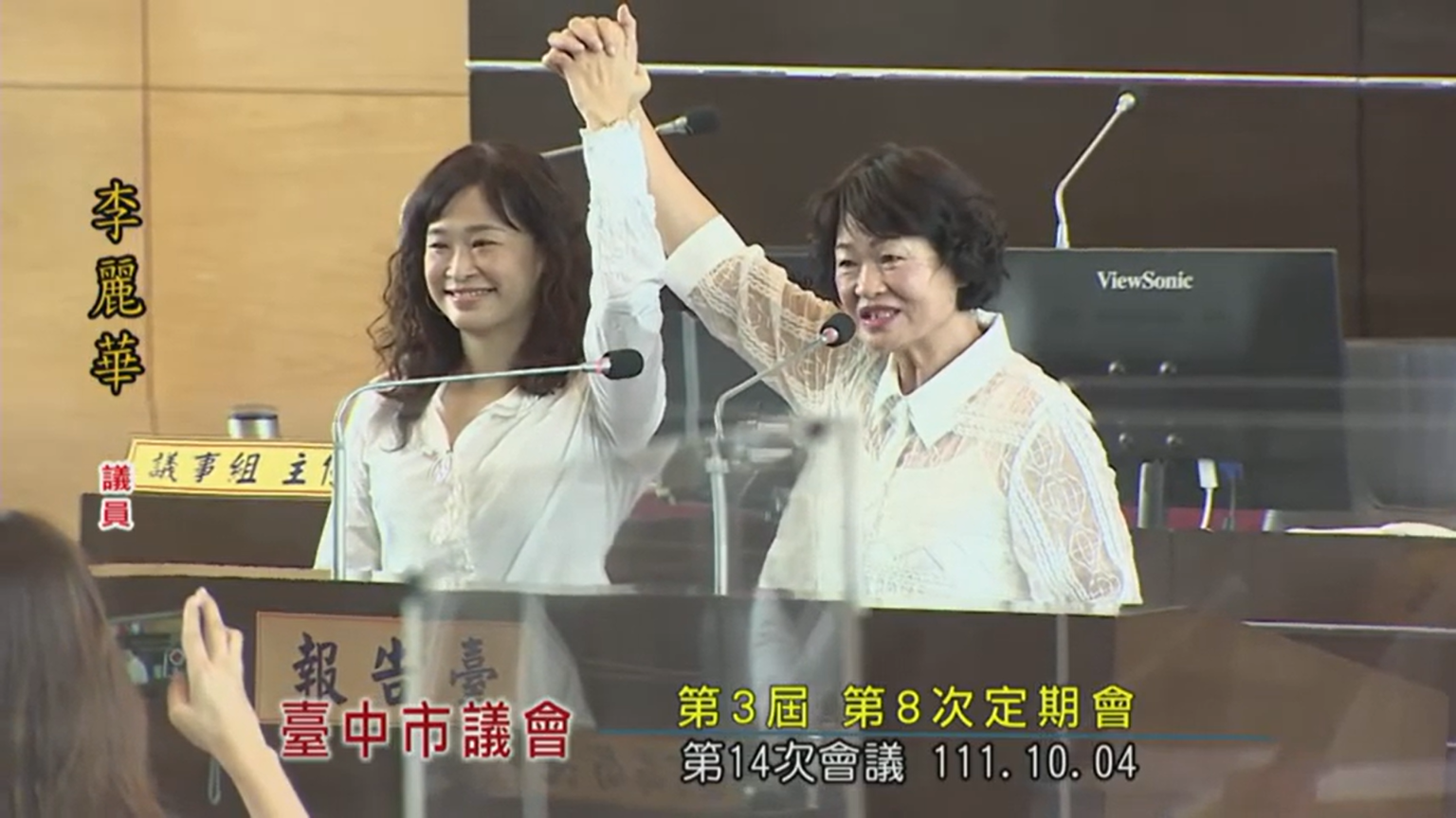 台中市市長盧秀燕也送花致意,他致詞表示,今年的台中市議會很不一樣,有10位議員選擇功成身退,不再爭取連任,要把機會交棒給年輕人,他感謝10位議員的付出。