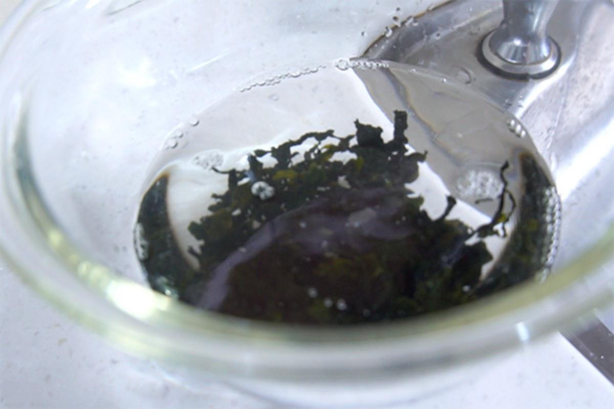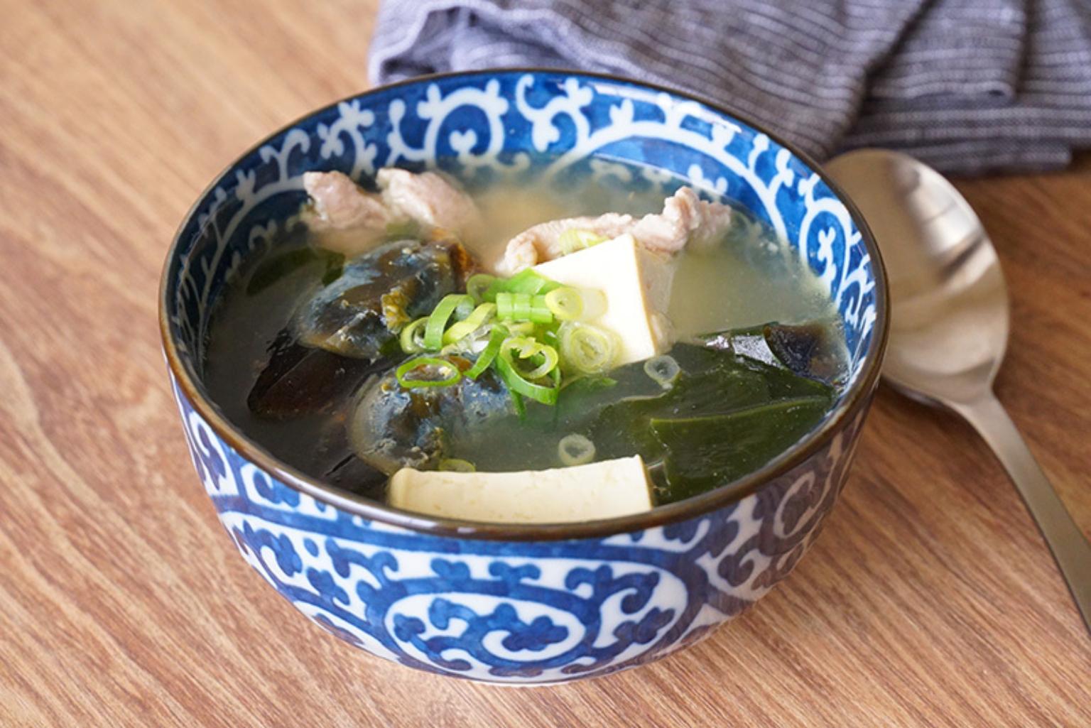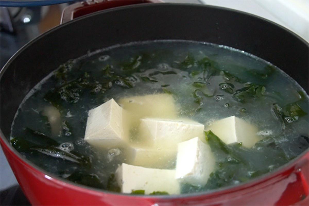 接著加入豬肉、海帶、豆腐,湯頭煮滾後再小火煮約5分鐘。關火後撒上一點蔥花就完成了。