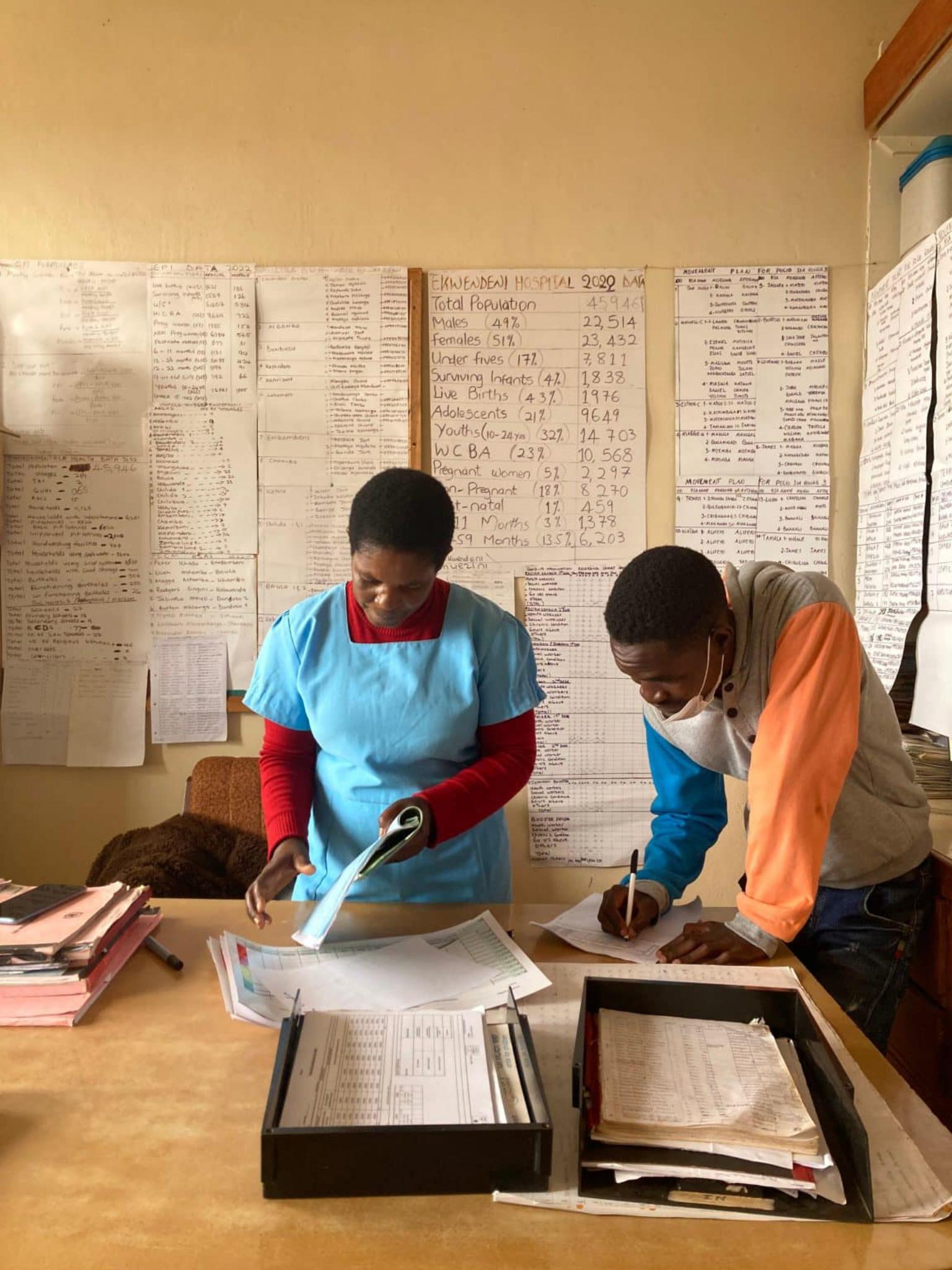 全球衛生學程2年級的美籍生April Hill和台大社會學系2年級日籍生Rena Yokogawa橫川蓮奈先分享,團隊在拜訪Mpherembe醫院時,跟隨DHO工作人員近距離學習他們收集IDSR(綜合疾病監測和反應)數據的工作,「DHO工作人員使用患者日誌並與每日和每週報告進行交叉檢查,也是改善開發中國家疾病監控和醫療照顧體系很重要的衛生資訊收集系統,我們甚至有機會幫忙計算IDSR的數據結果。」