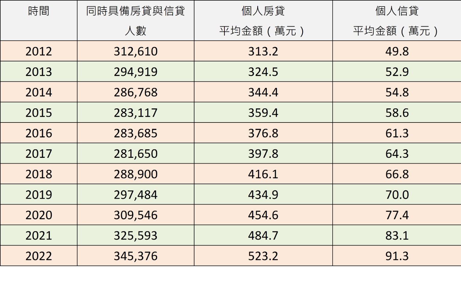 聯徵中心統計顯示,2012年1月信貸與房貸的雙貸族,平均貸款總金額為357萬元,不過今年7月已經增加到614萬元,創下統計以來新高,身揹房貸與新貸的雙貸族人數也是新高的34.5萬人,今年央行的資金政策已經由寬鬆轉緊縮,累計升息兩碼後,貸款一族的負擔也隨之增加。