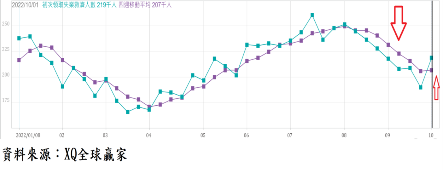 截至10月1止的美國單周初領失業救濟金人數由前周的19萬人,上升至21.9萬人。四周移動平均數20.7萬人,較前周的20.6萬人微幅上升,自4月以來緩步上升的四周移動初領失業救濟金平均人數出現轉向下降趨勢後單周僅微幅上升,就業市場大致仍呈現穩定狀態。8月失業率從7月的3.5%的近50年最低失業率上升至3.7%,即將公告的9月新增非農就業人口數及失業率數據將是市場高度關注的焦點。