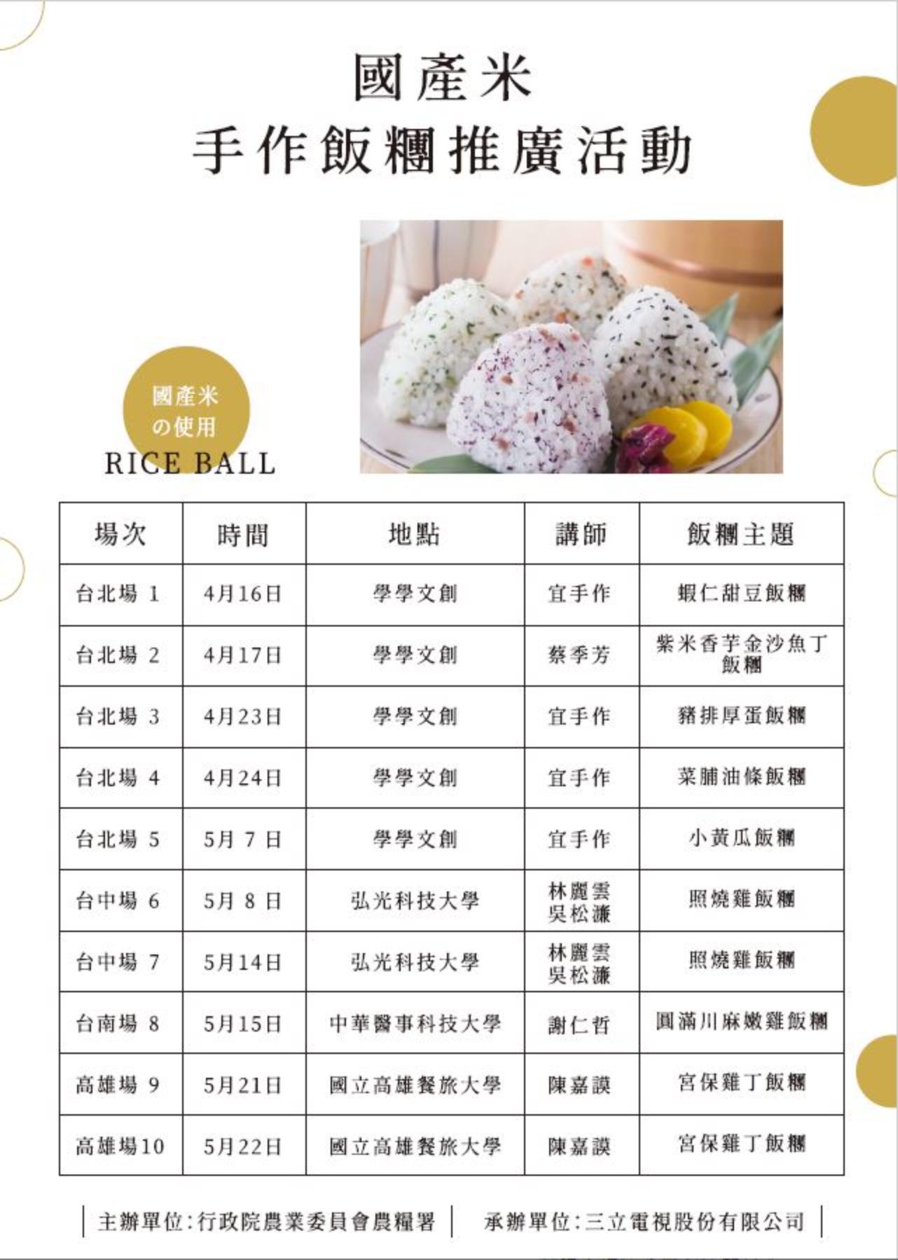 在研究相關標案的過程中,發現一個「國產米手作飯糰推廣活動」標案,主要是附帶於農、牧、林之勞務類標案。根據農委會農糧署敘述,此推廣活動是為了讓國人愛上台灣米的好滋味,邀請超人氣料理達人、5星級飯店主廚及國際廚藝大賽金牌得主「開班授課」。