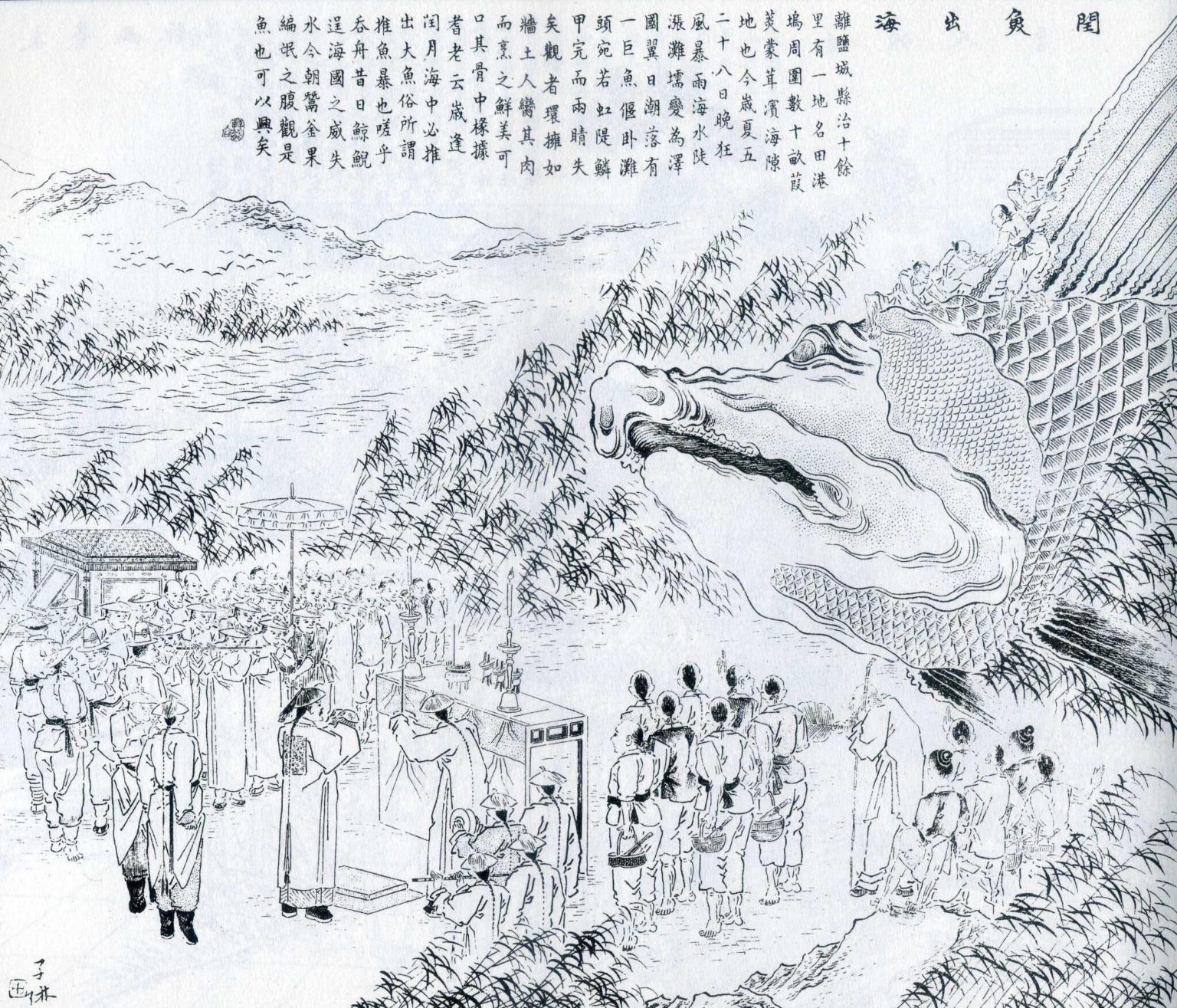 這些出現在地方志的記載,不僅對鯨豚的大小做出如房子般巨大、且能張口吞船的誇張比喻,也描繪了牠們三五成群現蹤,從頭頂噴水、在海上翻身等生活習性,讓我們從字句間拼湊出古代的鯨豚生態、人與鯨豚的互動,以及古人如何從其文化視角看待鯨豚與其擱淺現象。