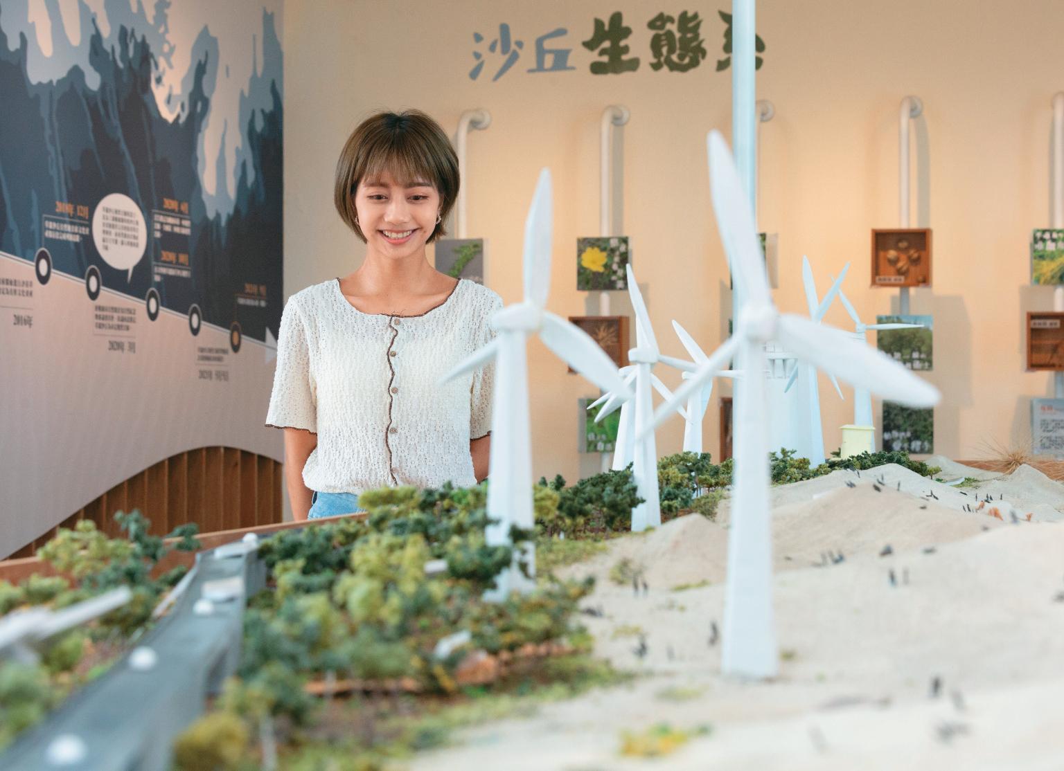 走進展示館,映入眼簾的是座大型「草漯沙丘主視覺模型」,北起老街溪、南至大堀溪的沙丘全域景勝一覽無遺,模型上更放置了沙丘常見的濱刺麥、礁石提供把玩,亦有沙丘常見動植物知識介紹,讓遊客能進一步認識沙丘生態圈。而最有趣的是館內的互動體驗設施,透過磁力、季風模擬、等高線偵測儀等裝置,提供直覺式的知識教學,讓各年齡層的遊客都能輕鬆瞭解大自然與沙丘間的關係。接著來到展示館2樓觀景台,隨興選個靠窗的座位,讓身心在連綿沙丘與遼闊大海的絕景中獲得療癒。