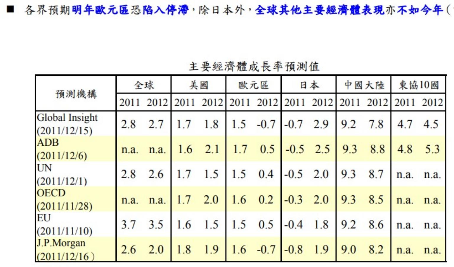 當初的恐慌程度不難從台灣央行2011年底報告看出來(註:中央銀行100.12.22、歐債危機對全球經濟金融之衝擊),更不用說當時市場還覺得央行下修幅度是保守,不乏有人說經濟要大幅衰退。