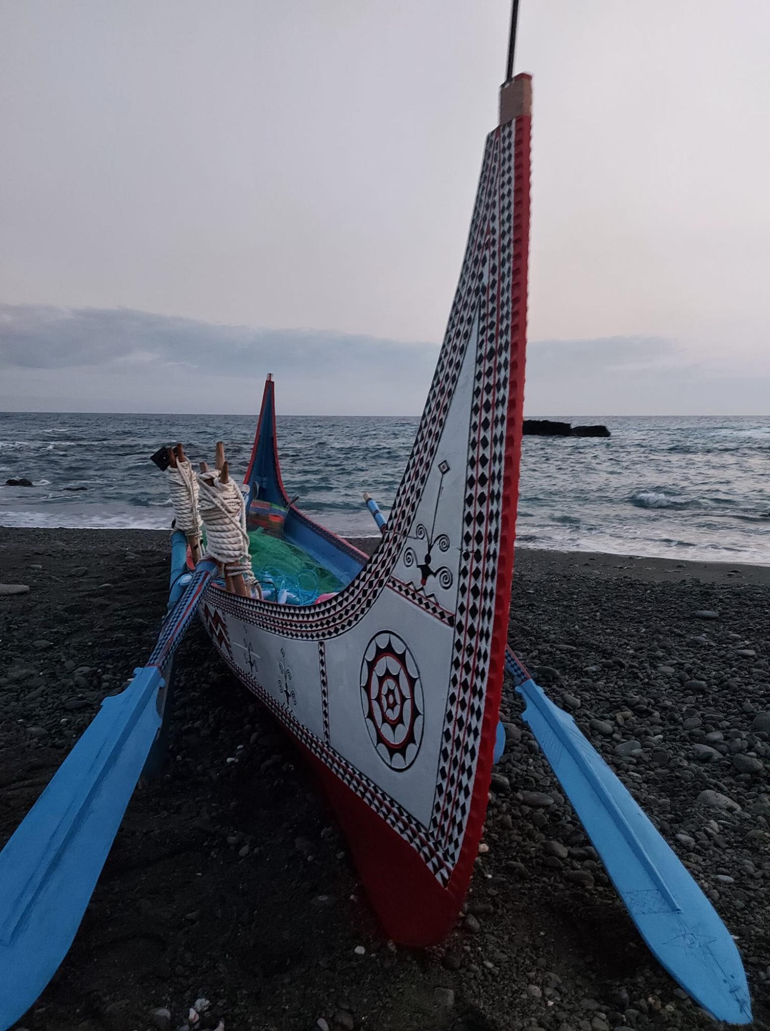 遠離了部落的路燈,我們划的船駛經到了比黑夜更黑暗的沿岸礁壁,除去心臟跳動的怦怦聲以外,只有槳葉插入海裡節奏一致的聲音讓船隻行駛,我的二頭肌、三頭肌,我握槳的手掌漸漸的結實了起來,浮動的海面來自海底跳躍的湧浪,然後拍擊礁岸回波震盪讓船隻起伏,好舒服,我心裡想著,我終於出海,也即將點燃蘆葦的火炬。